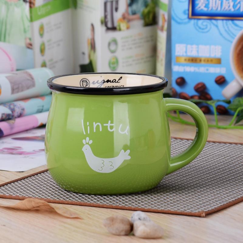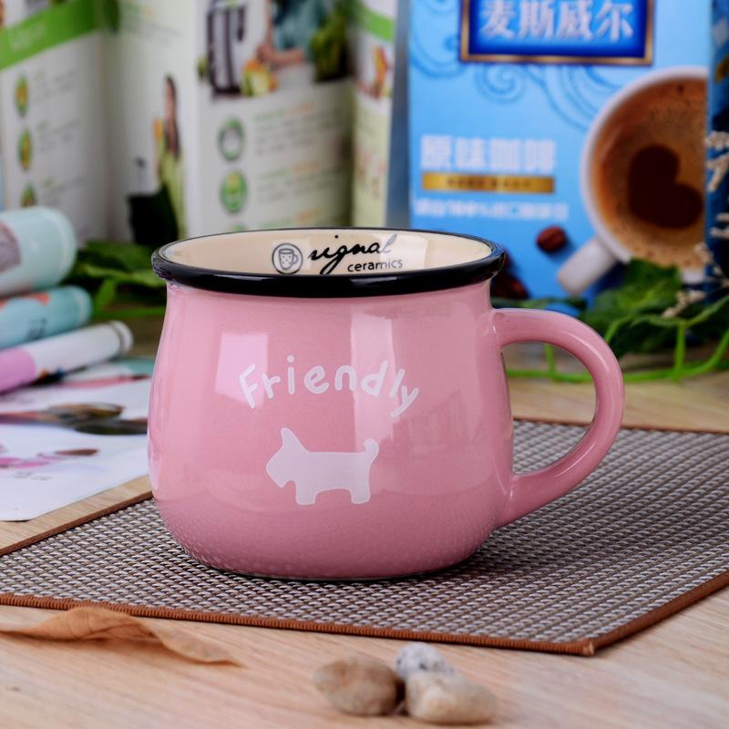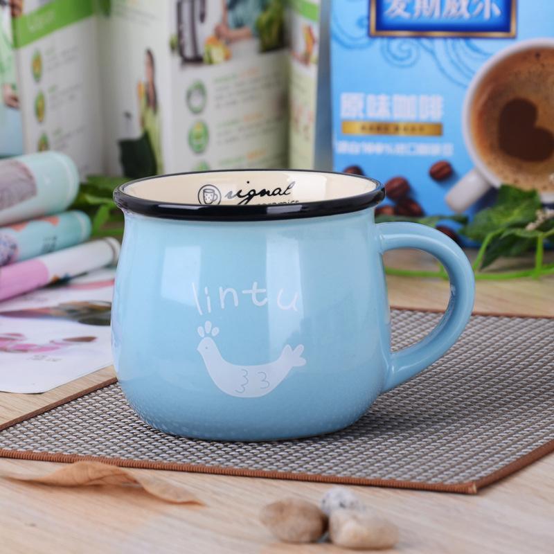 Copo de leite de cerâmica, copo esmaltado com borda preta