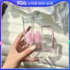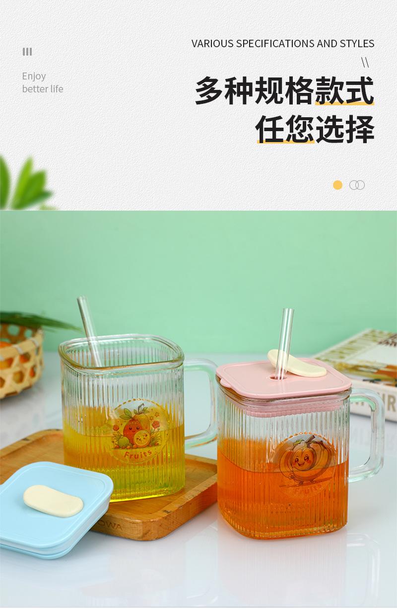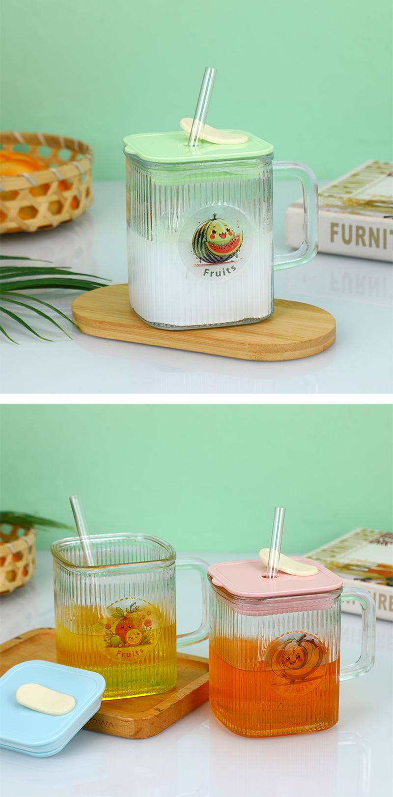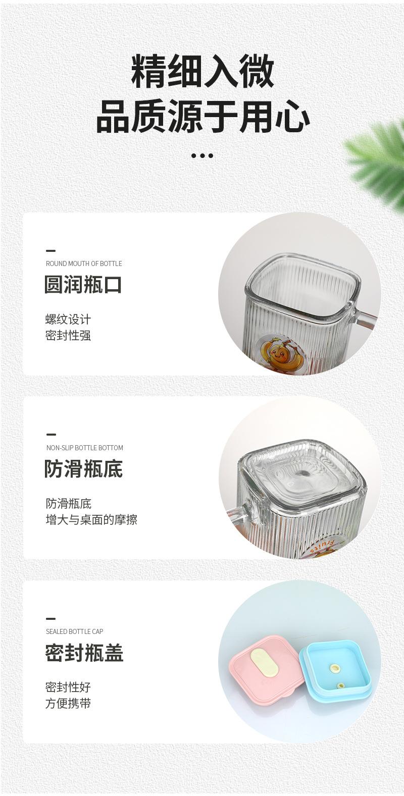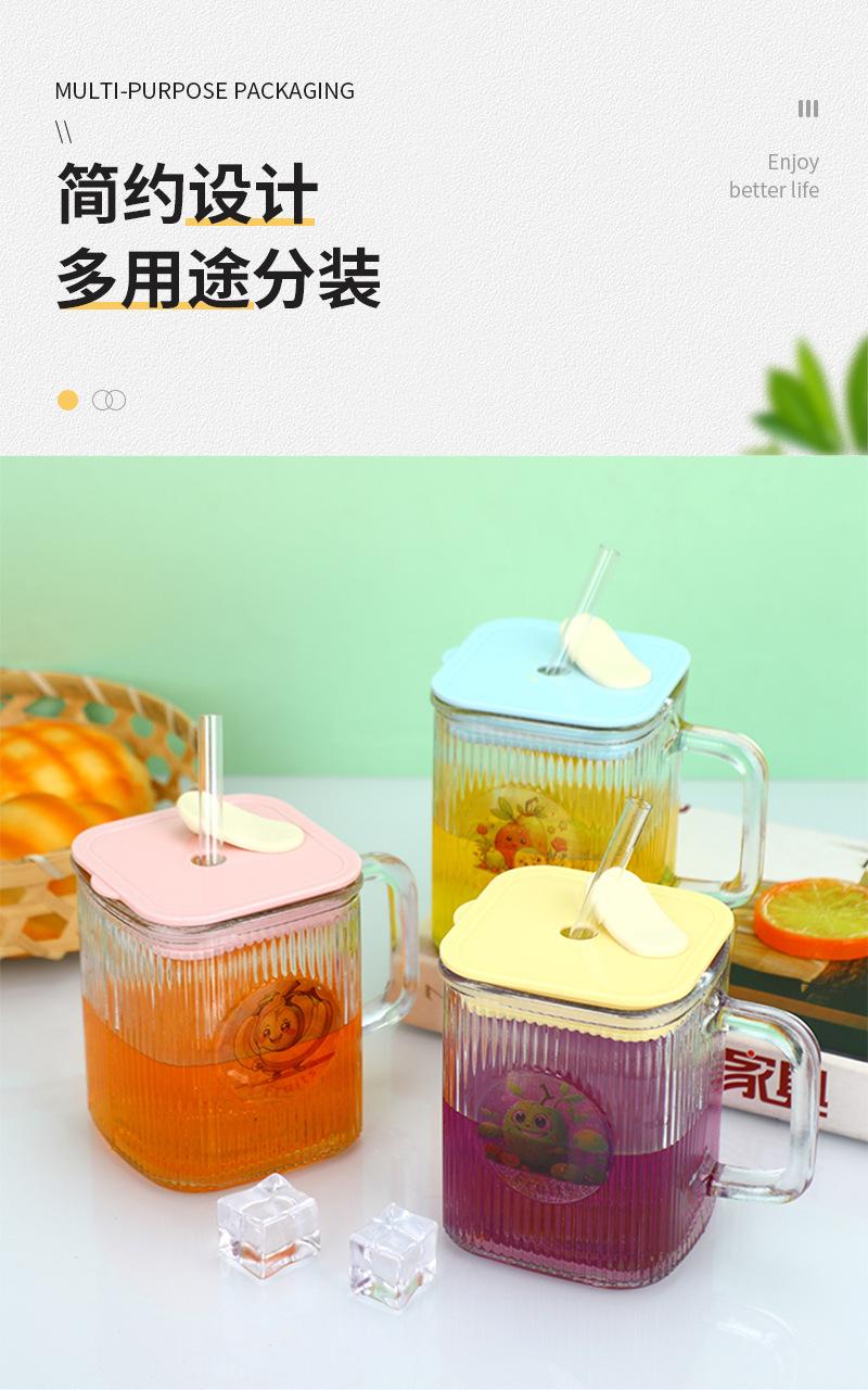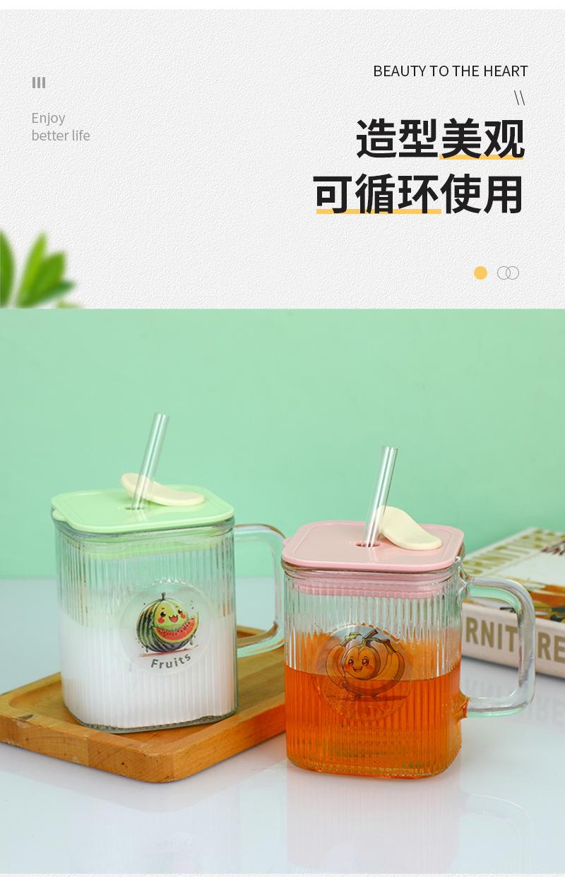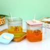 Ins Style Copo de vidro quadrado com alça Copo de água doméstico com canudo Copo de leite Copo de café Copo transparente Atacado