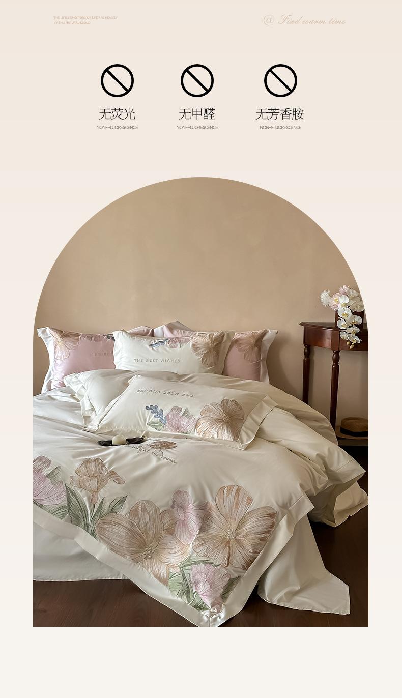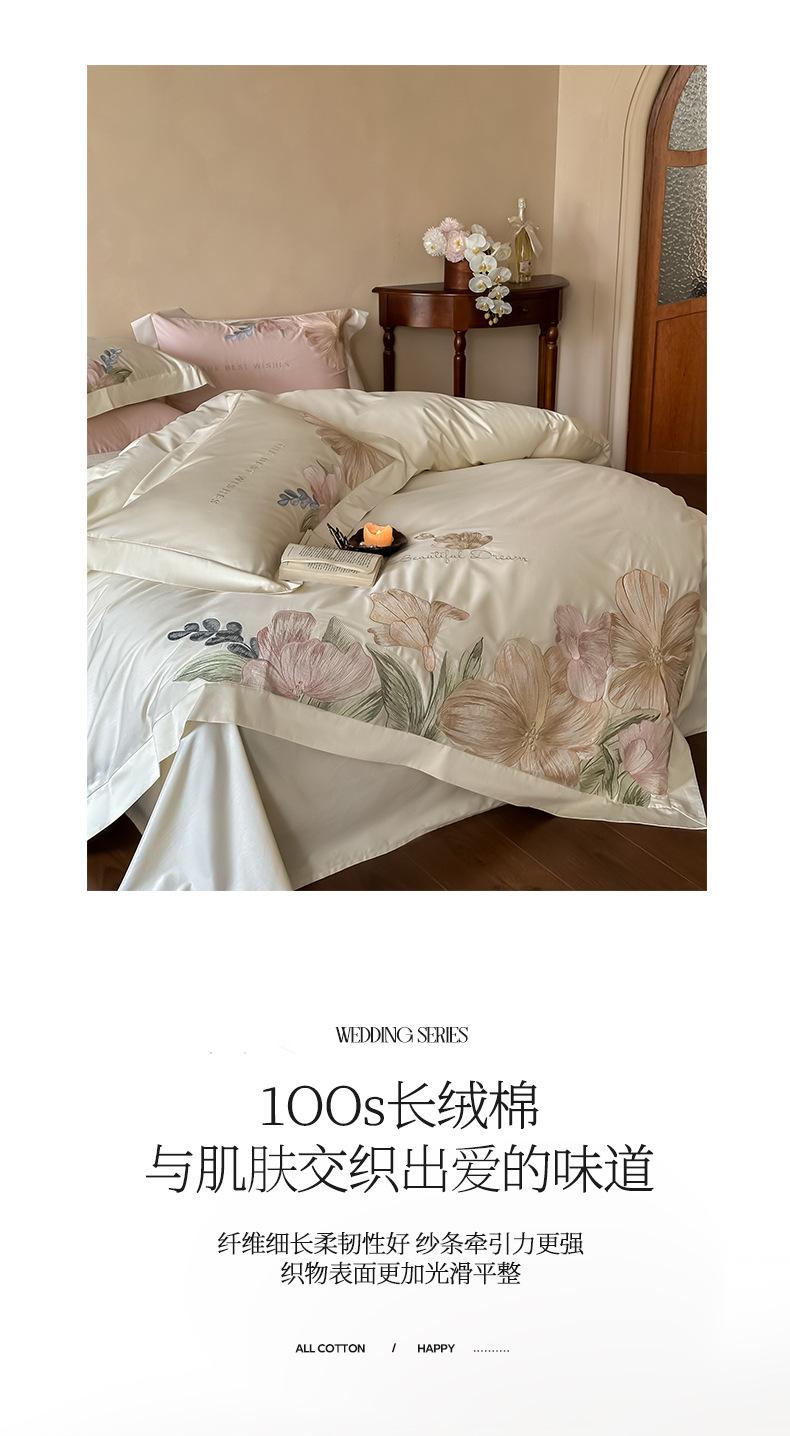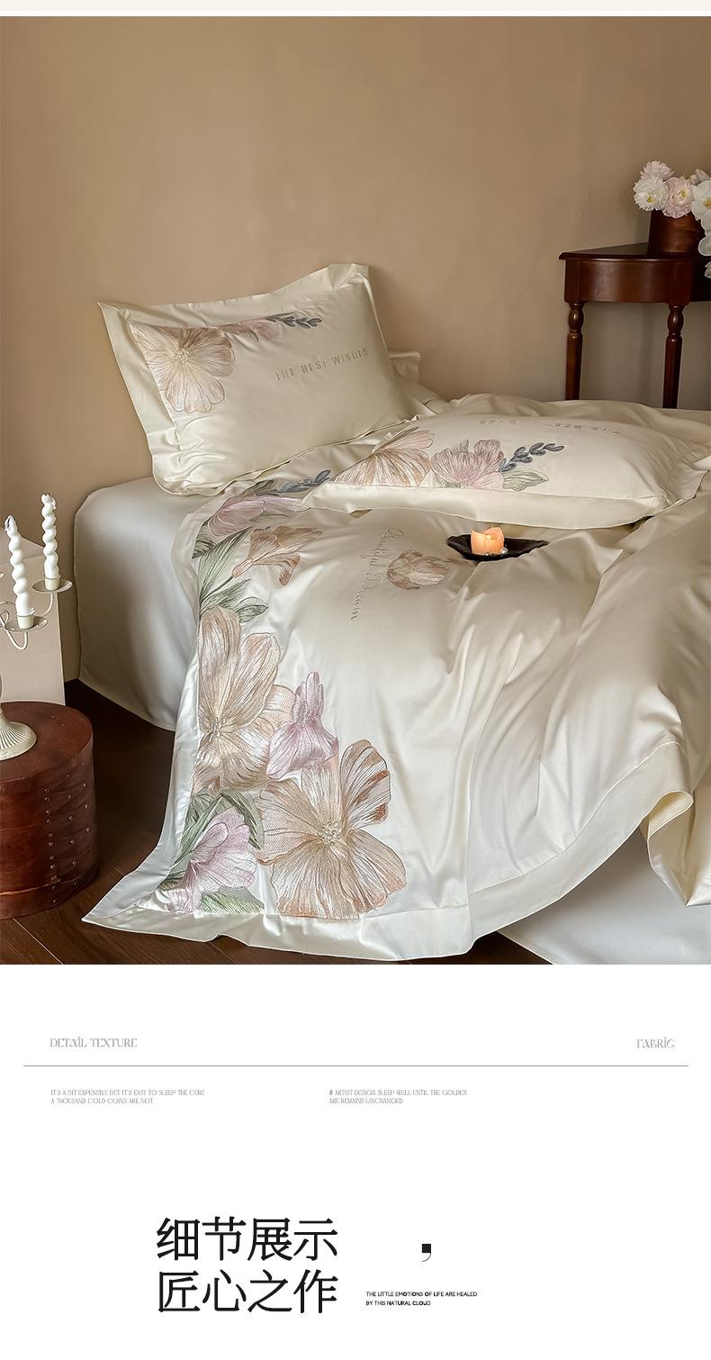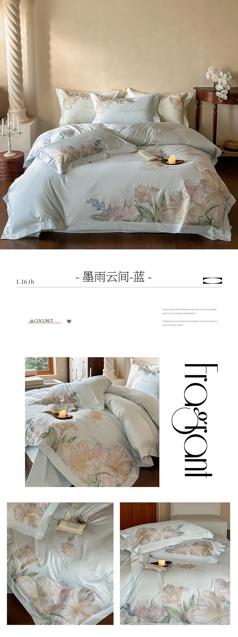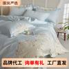 Novo algodão 100S algodão de fibra longa bordado conjunto de quatro peças lençol de cama de algodão capa de edredom kit de presente quatro estações casa