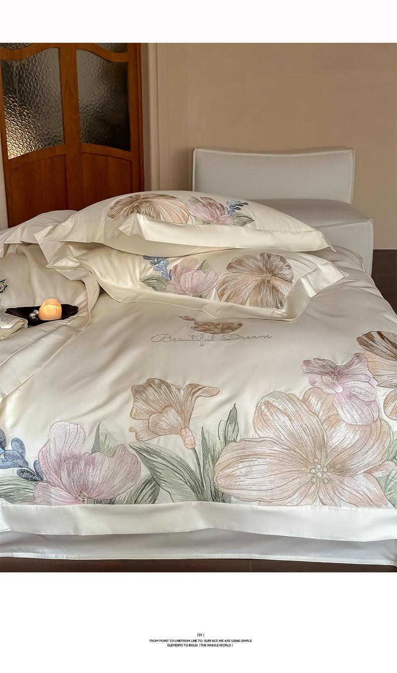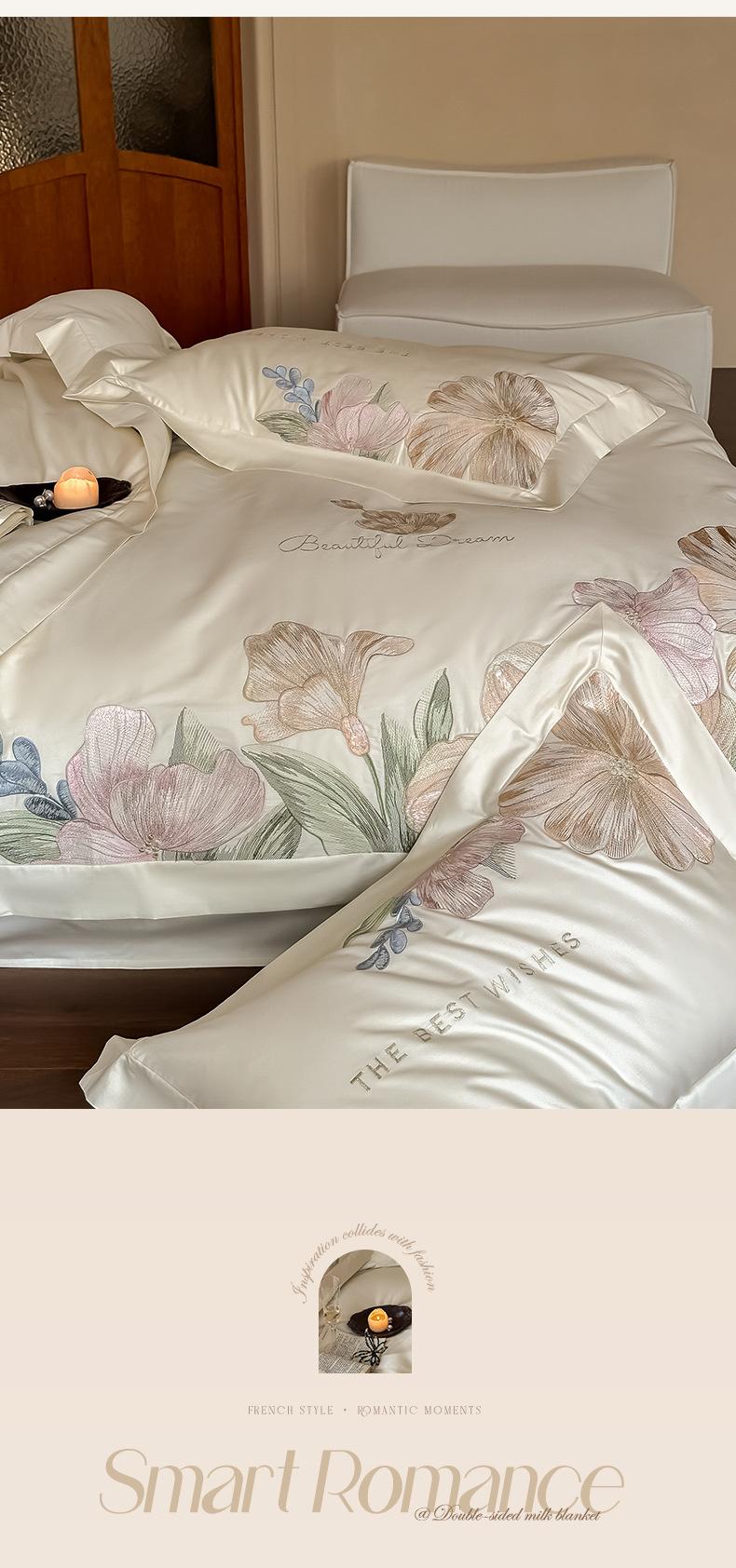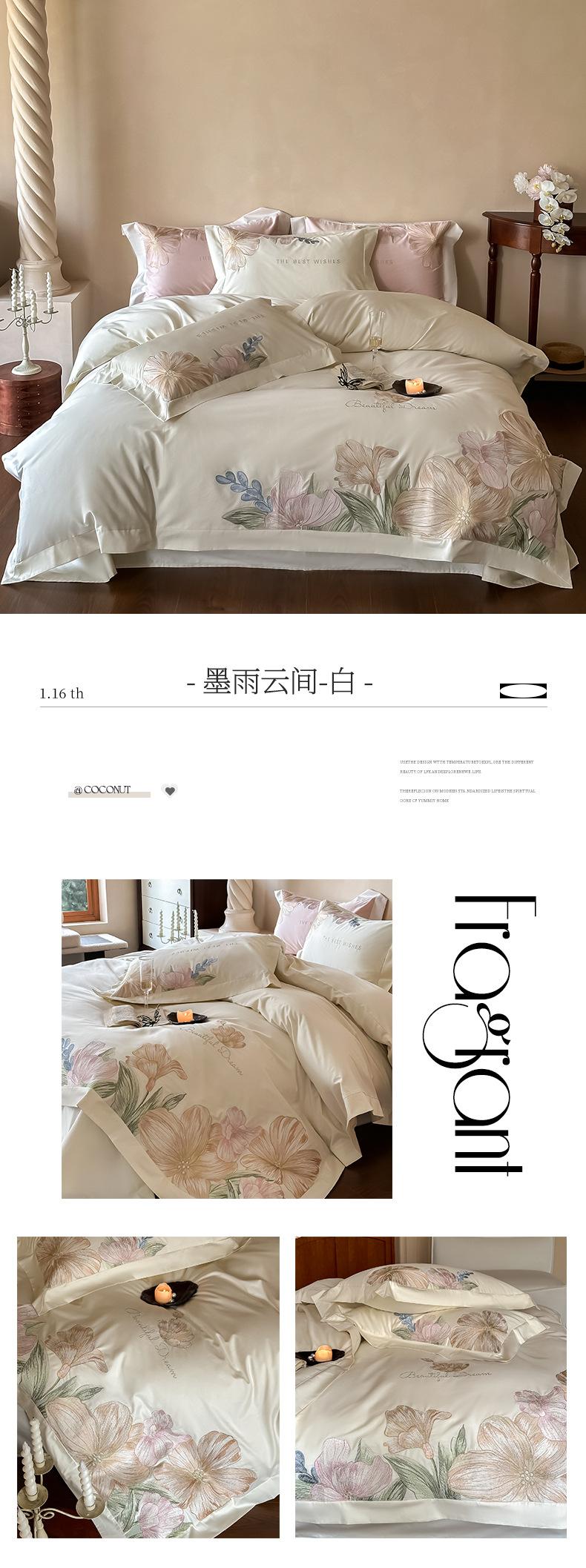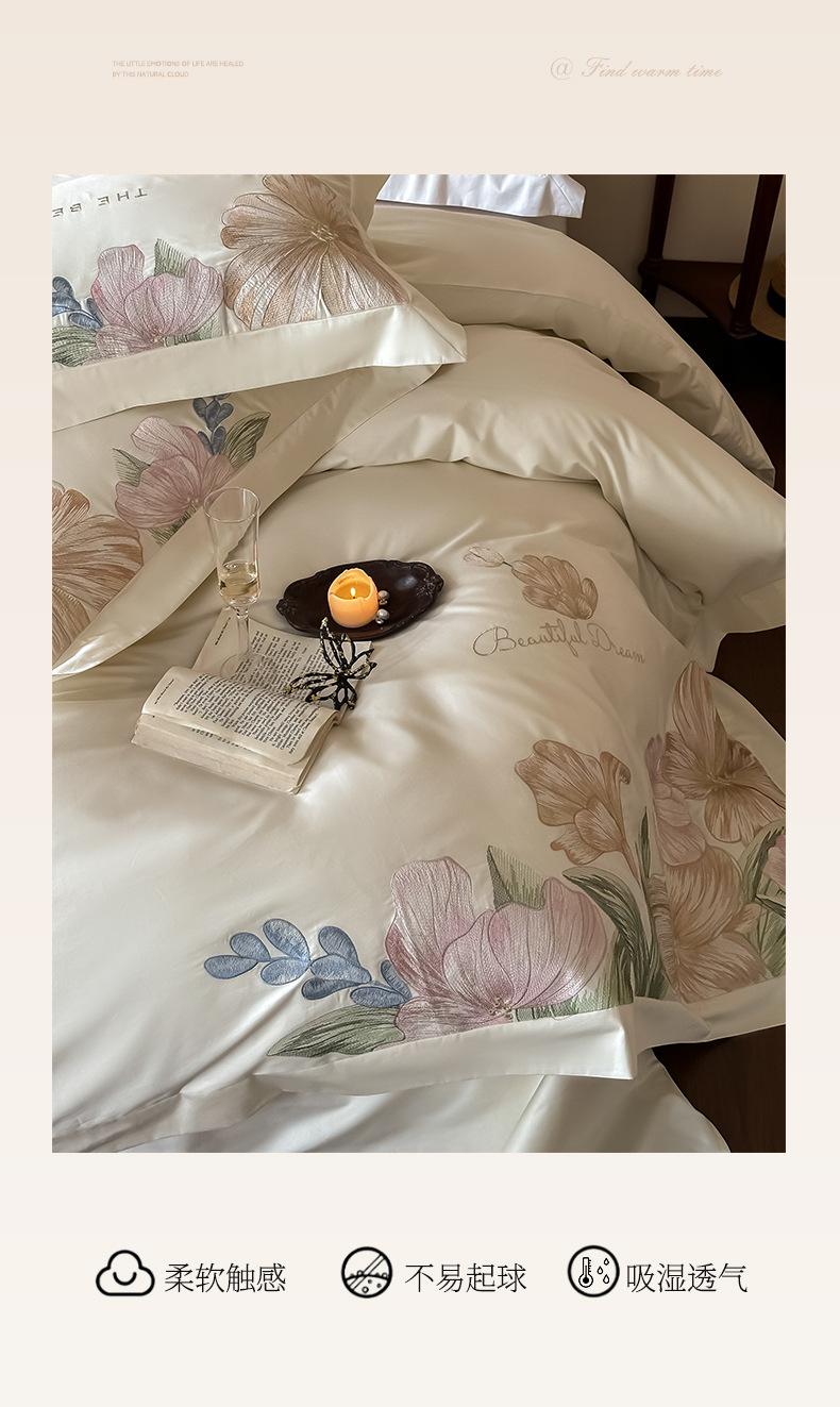Novo algodão 100S algodão de fibra longa bordado conjunto de quatro peças lençol de cama de algodão capa de edredom kit de presente quatro estações casa