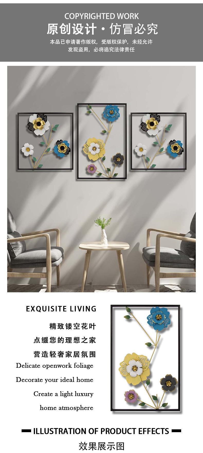 Decoração de parede de ferro criativa floral, metal, novo estilo chinês, flor, pendurado na parede, sala de estar, entrada, quarto, decoração de parede