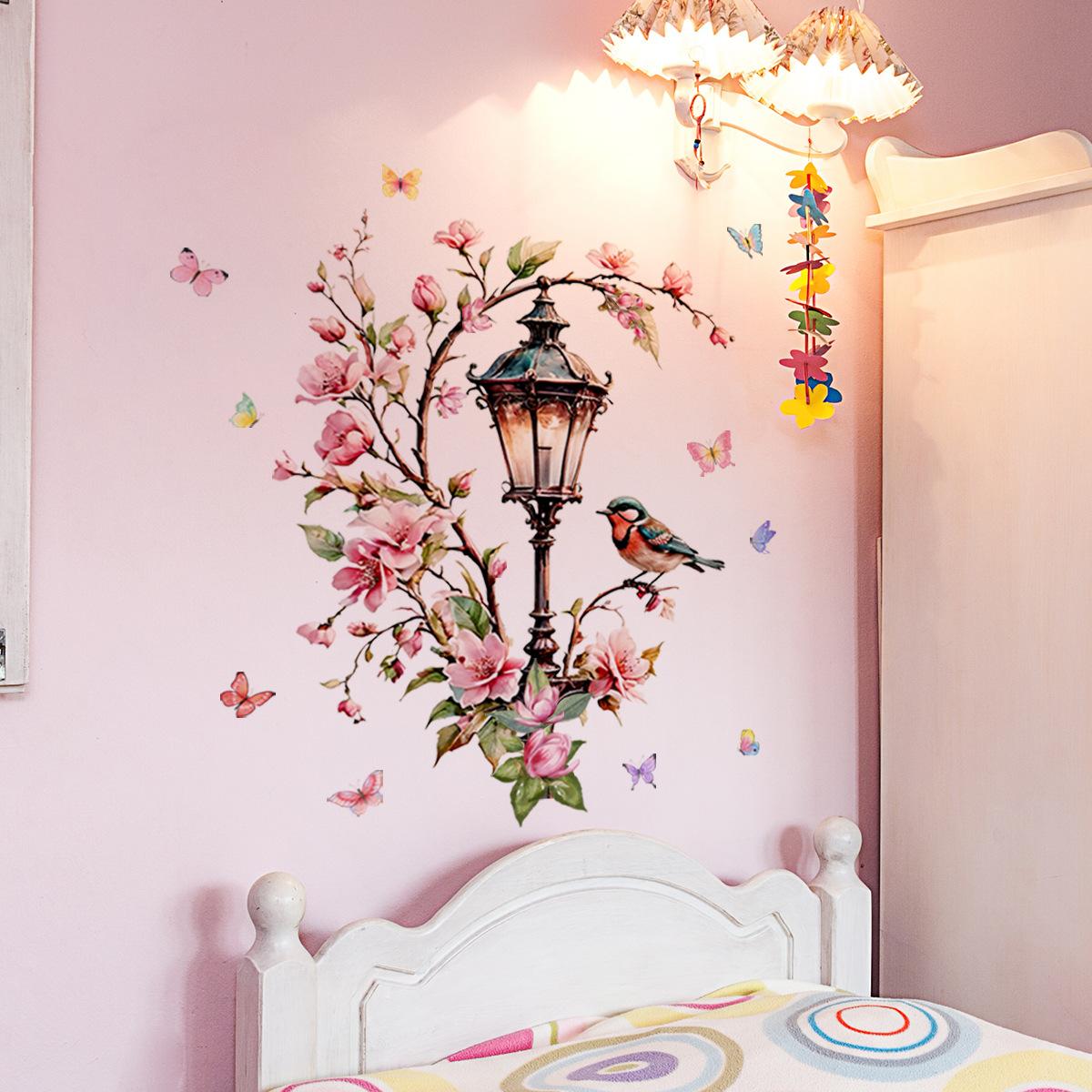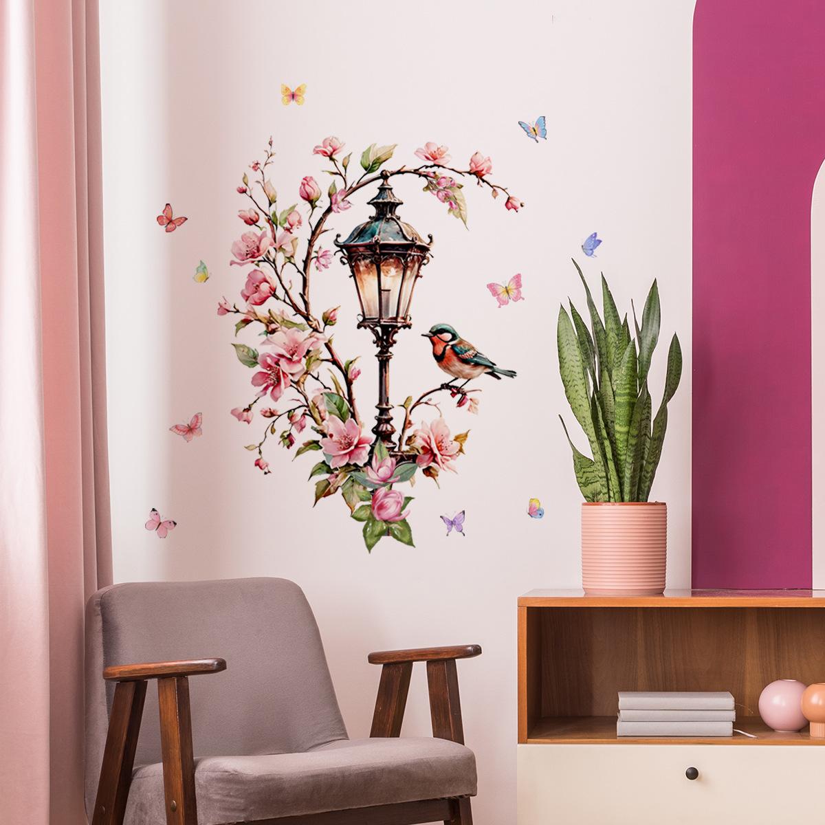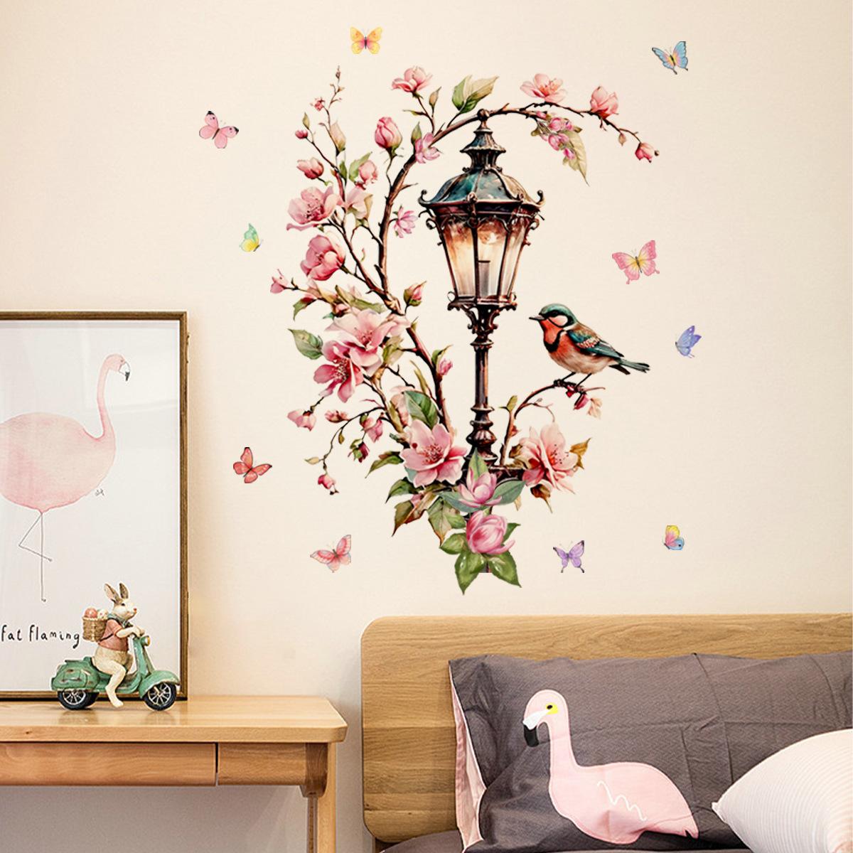 MS2558 Adesivos de parede criativos de flores, galhos de pássaros, iluminação pública, sala de estar, quarto, fundo de parede, decoração de casa, adesivos de parede autoadesivos