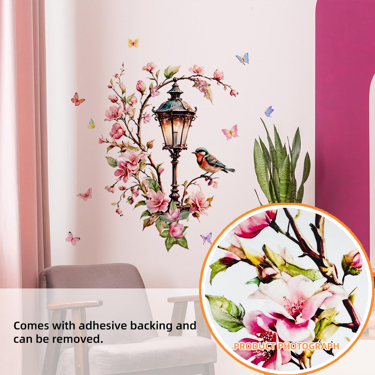Compre MS2558 Adesivos de parede criativos de flores, galhos de pássaros, iluminação pública, sala de estar, quarto, fundo de parede, decoração de casa, adesivos de parede autoadesivos no atacado no Joom.pro
