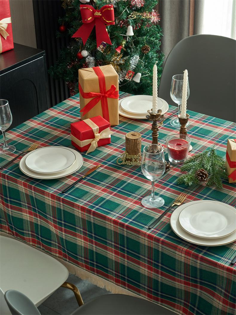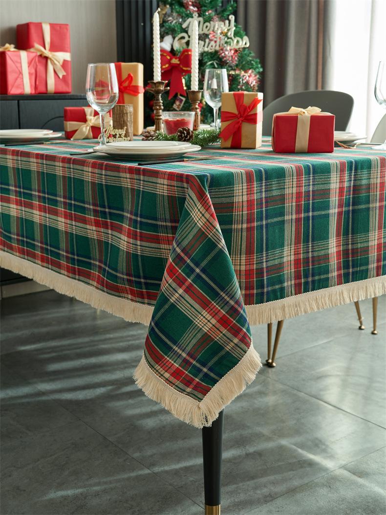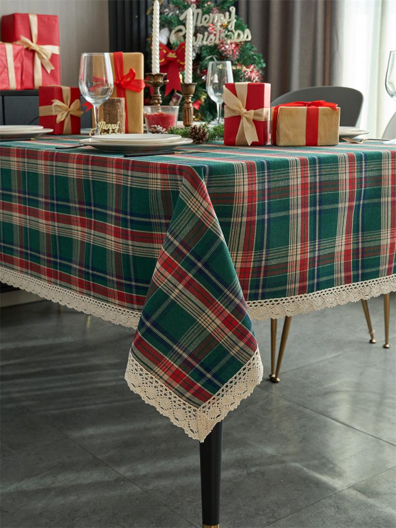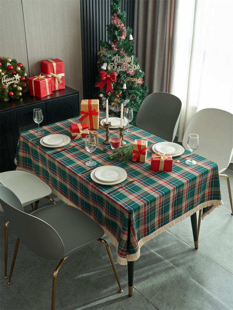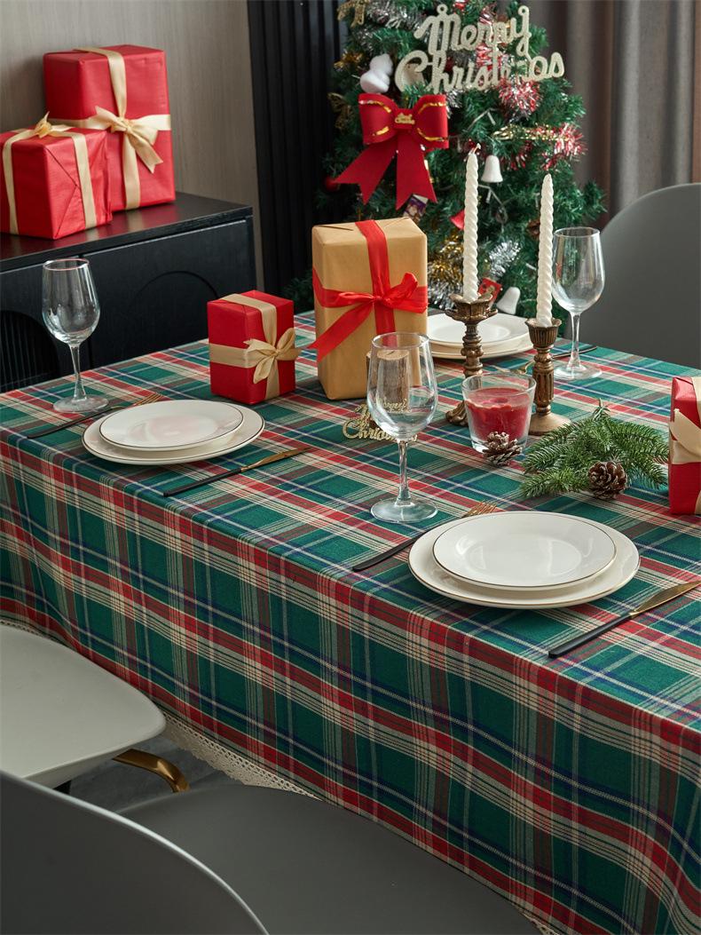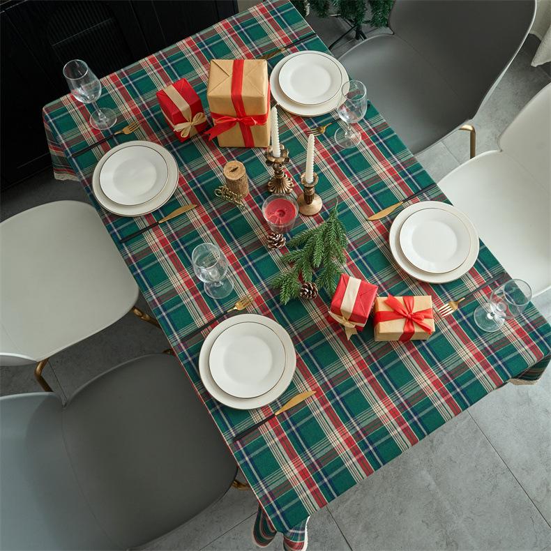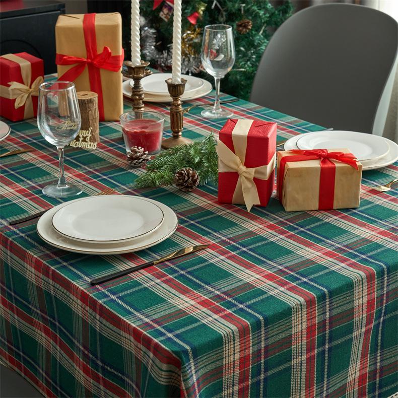 Atacado Americano Amazon Toalha de Mesa de Natal Xadrez Verde Tingida com Fio Toalha de Mesa Retangular Capa de Pano Dropshipping