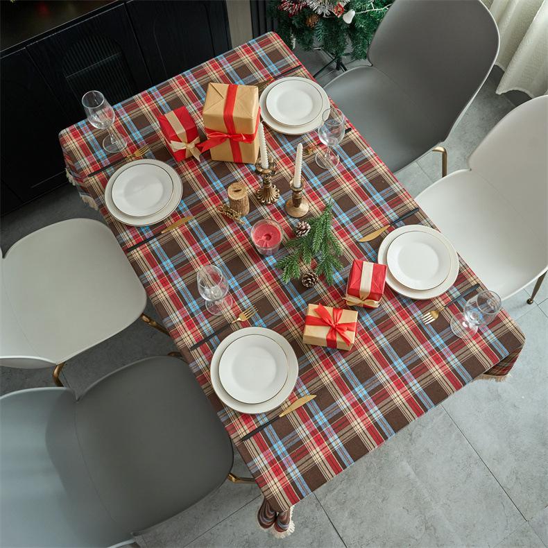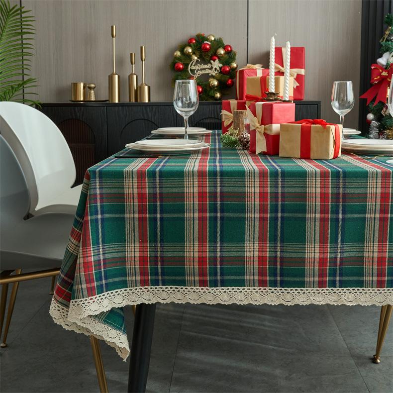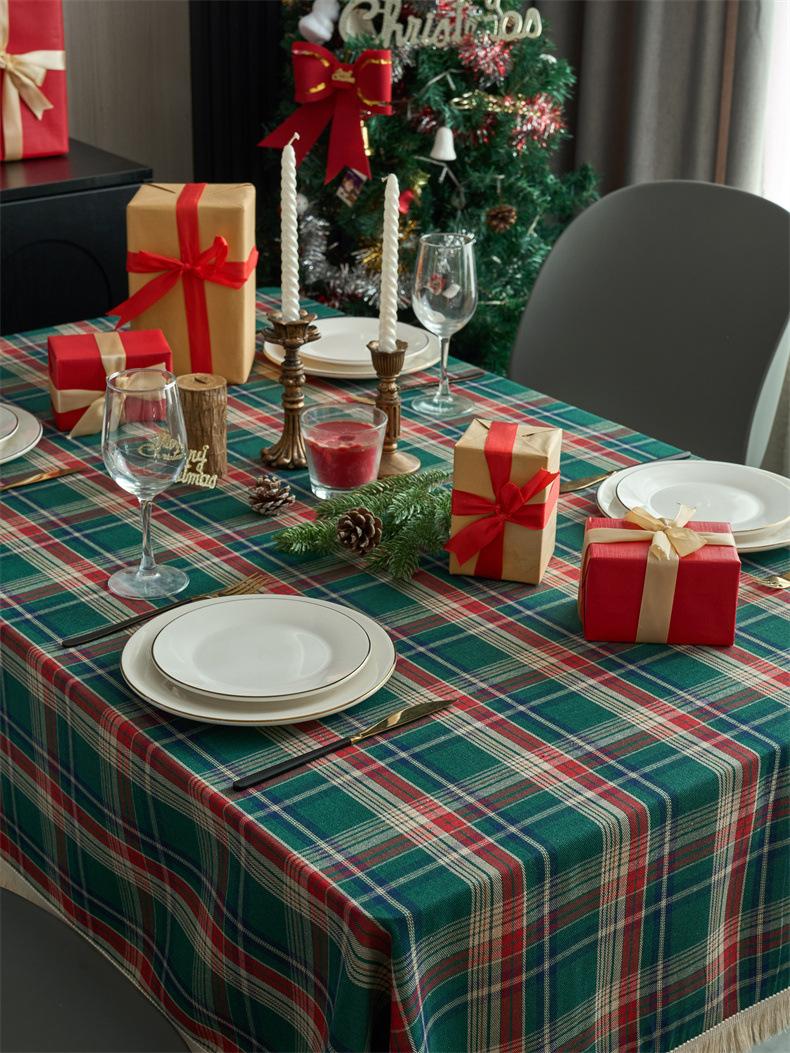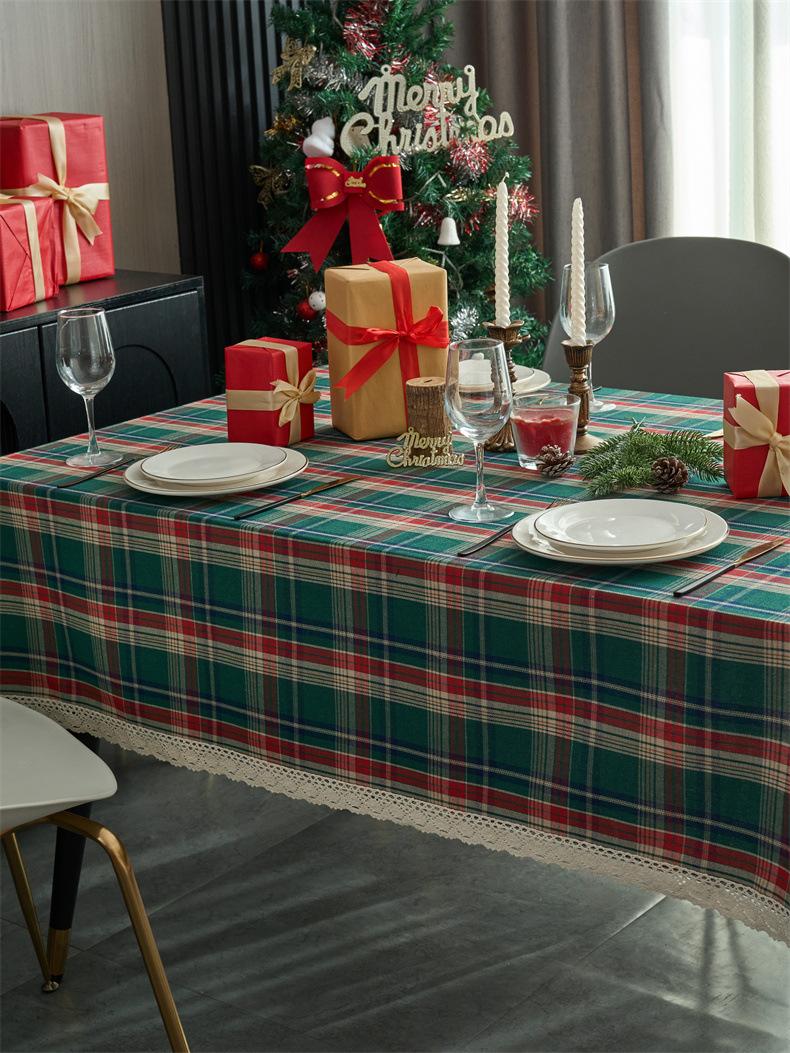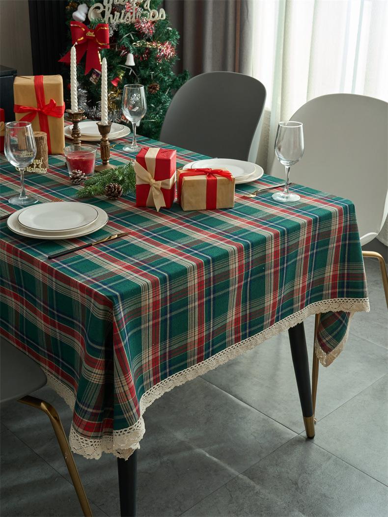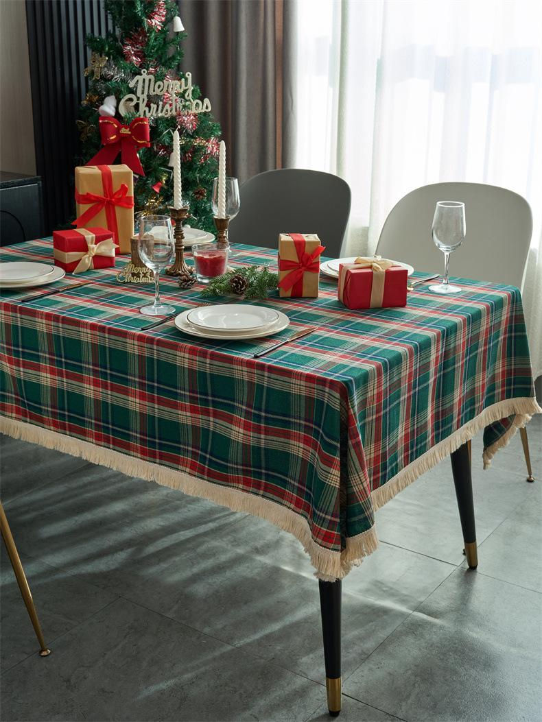 Atacado Americano Amazon Toalha de Mesa de Natal Xadrez Verde Tingida com Fio Toalha de Mesa Retangular Capa de Pano Dropshipping