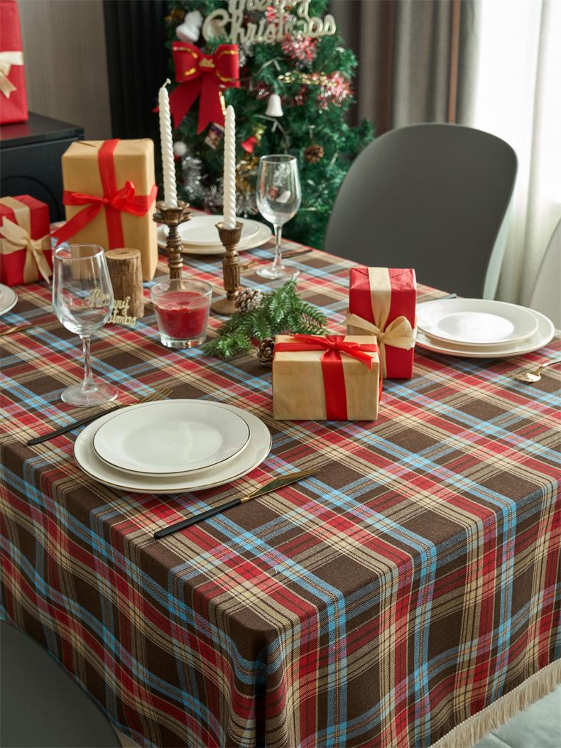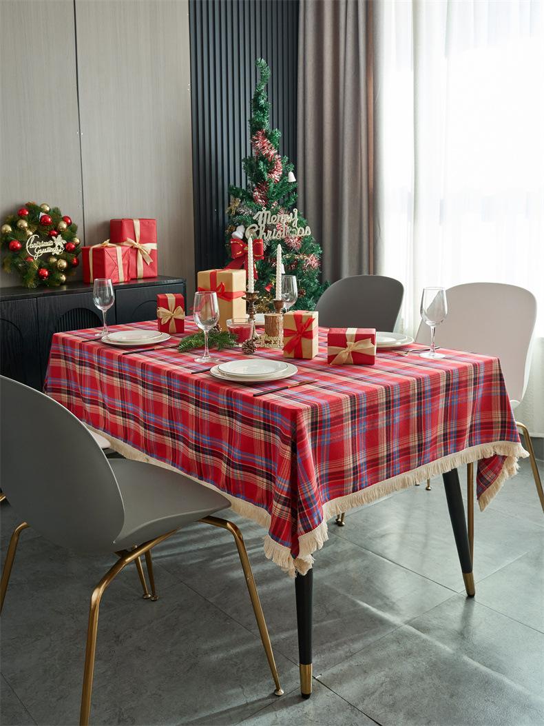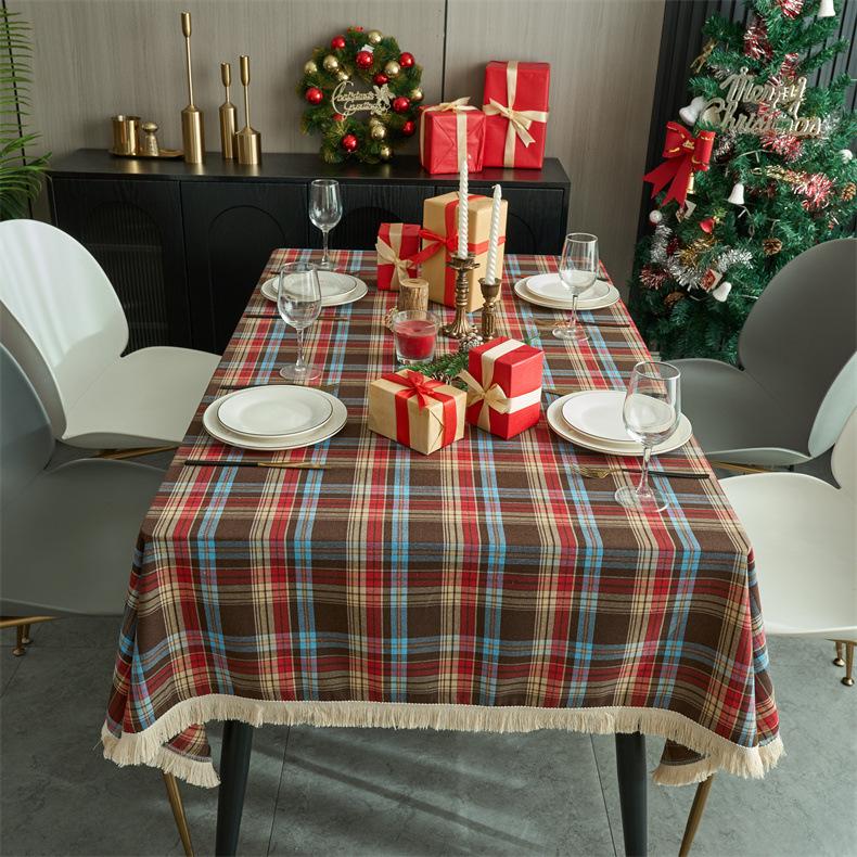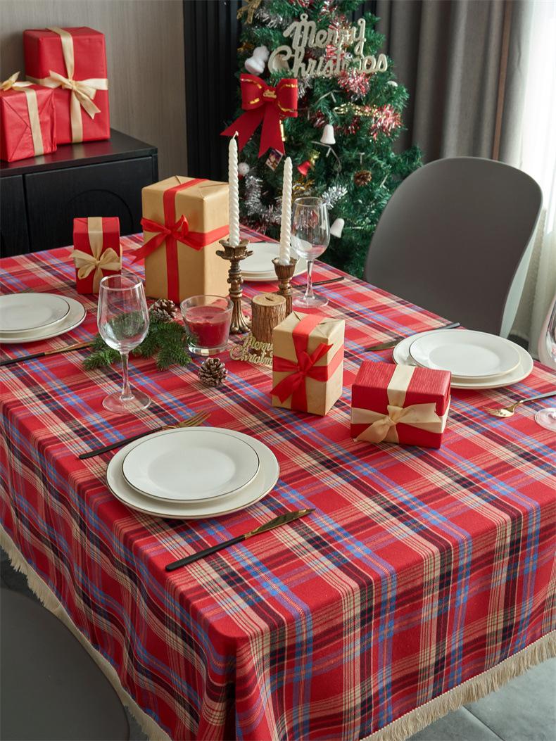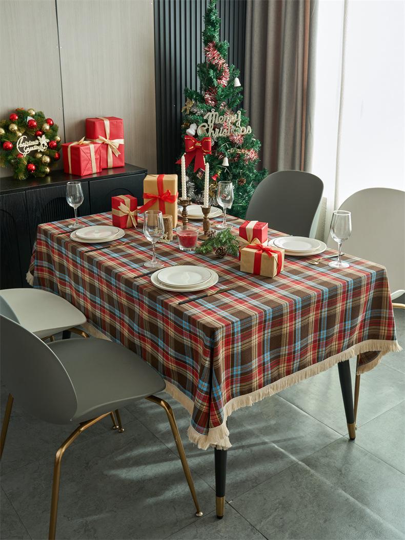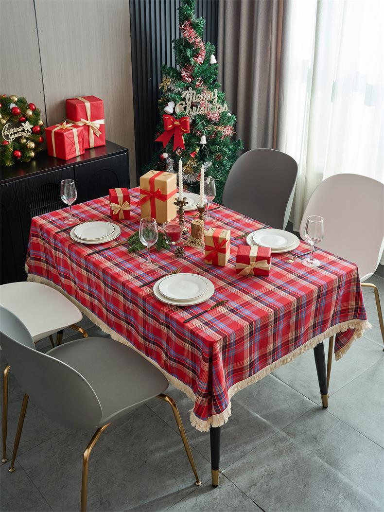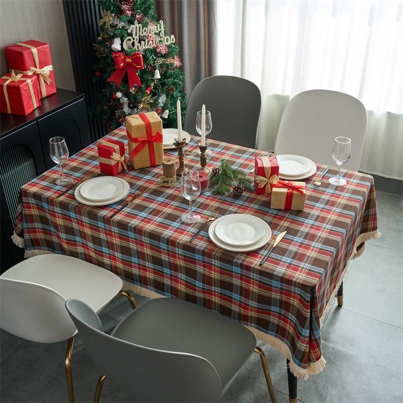 Atacado Americano Amazon Toalha de Mesa de Natal Xadrez Verde Tingida com Fio Toalha de Mesa Retangular Capa de Pano Dropshipping