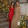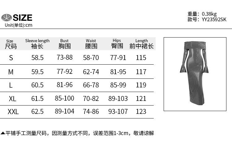Outono 2024 Moda Sexy Lantejoulas Elegante Vestido Quadril Slim-fit Gola de uma palavra Chifre Vestido de manga comprida