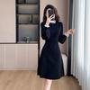 Vestido de malha de base francesa inverno novo feminino veste cintura justa estilo hepburn vestido longo