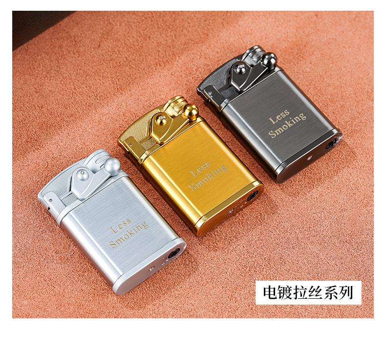 Isqueiro eletrônico retrô de personalidade de ponta, à prova de vento, presente criativo, isqueiro inflável de metal