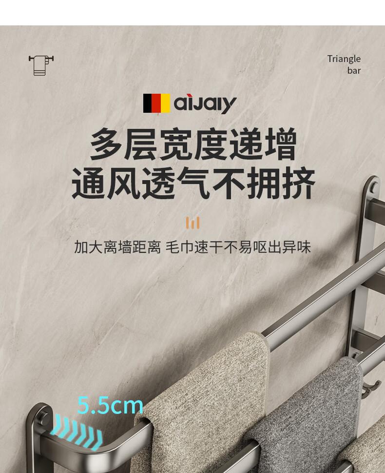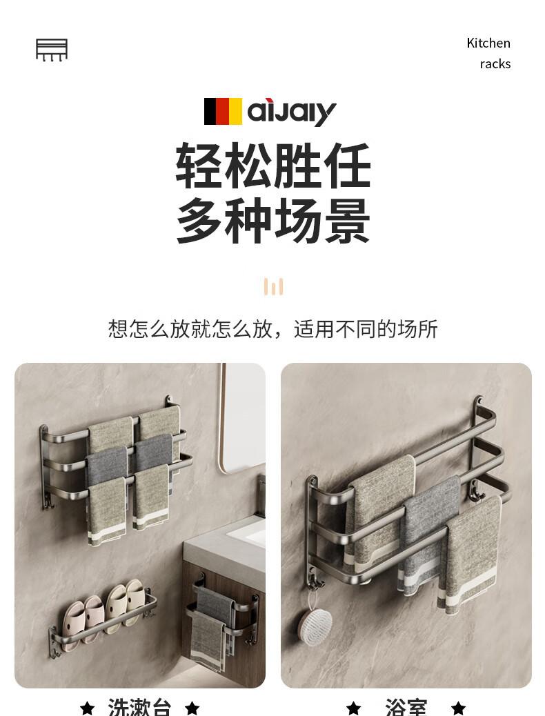 Toalheiro cinza Gun Toalheiro anti-perfuração para banheiro Toalheiro de parede para pendurar Toalheiro para armazenamento de banheiro