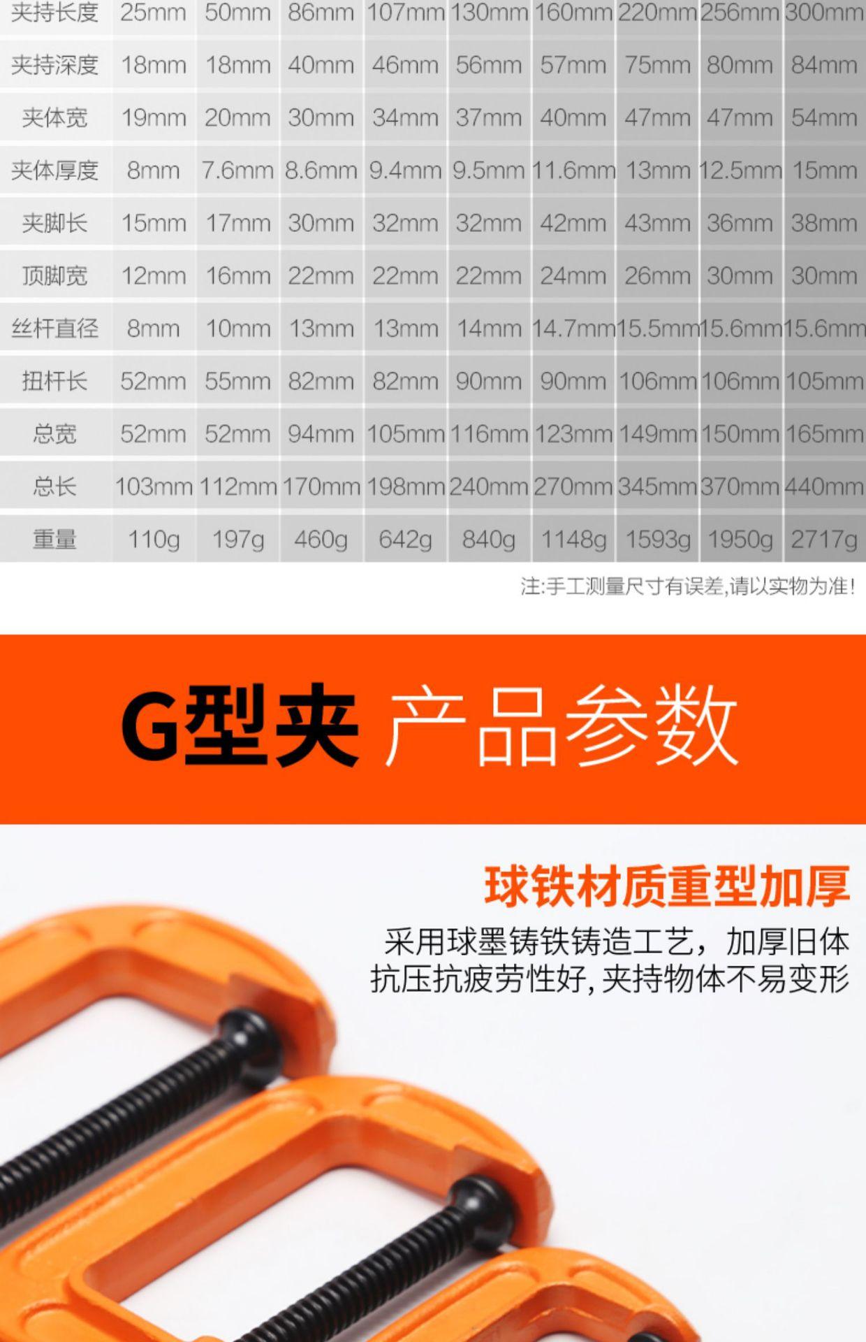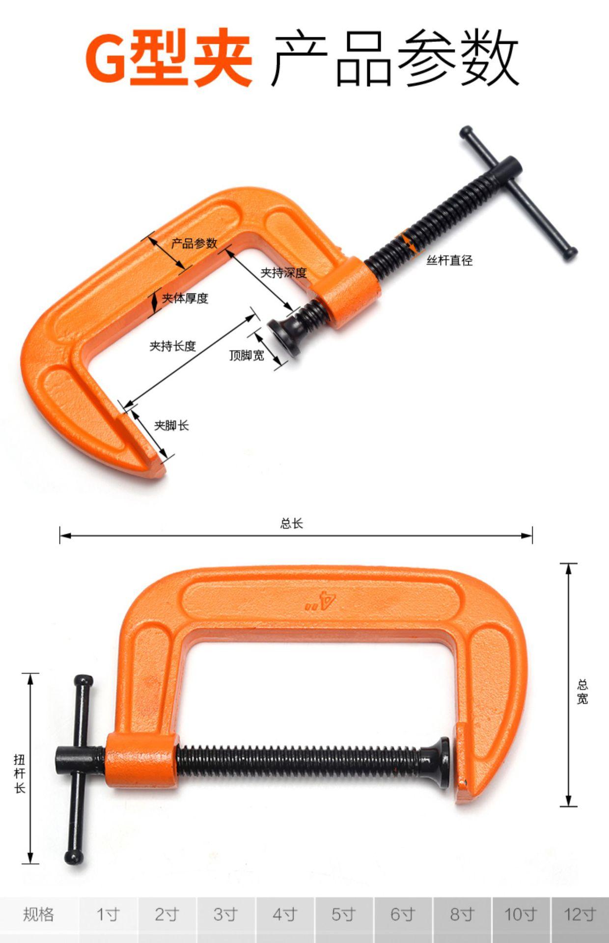 2inch g-shaped clip [can hold 50mm], 3inch g-shaped clip [clamping 86mm], 4inch g-shaped clip [clamping 100mm]...