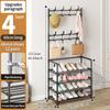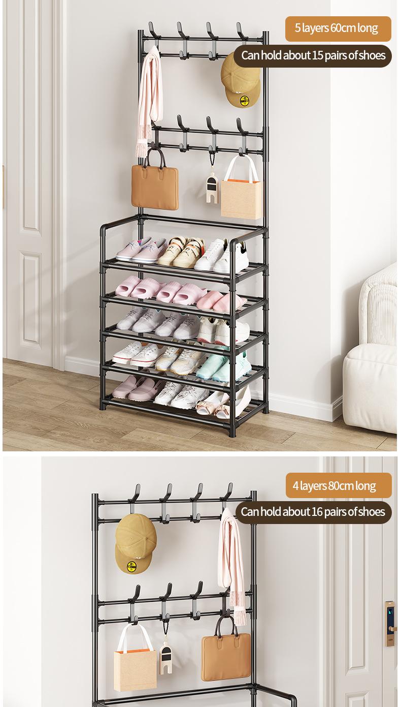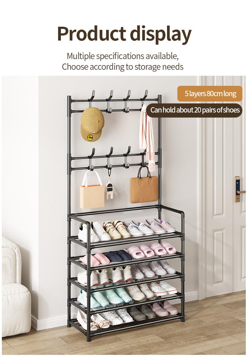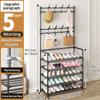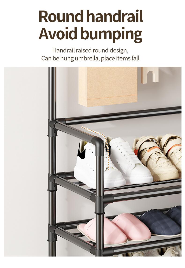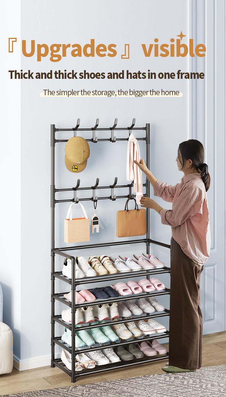 Sapateira simples e cabide para chapéus, porta de tubo grosso, cabide integrado para uso doméstico, armário para sapatos de várias camadas, cabideiro de chão