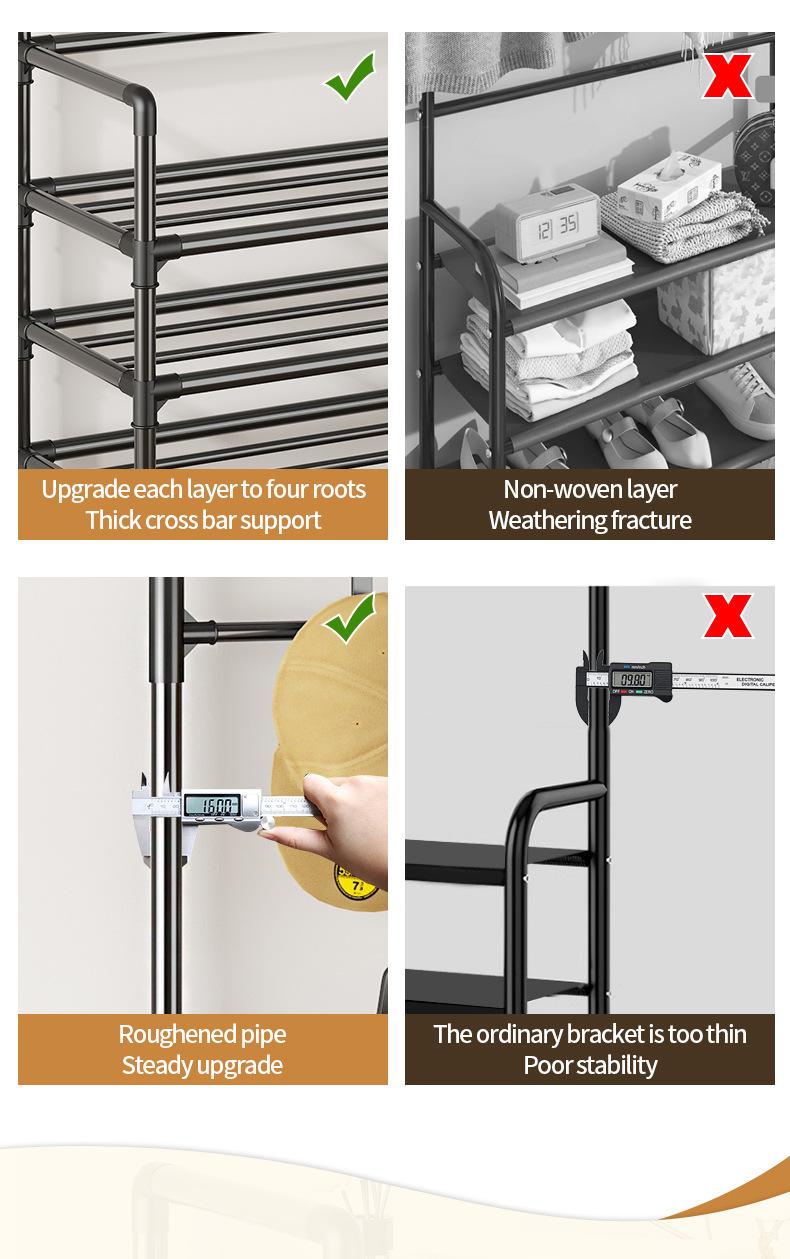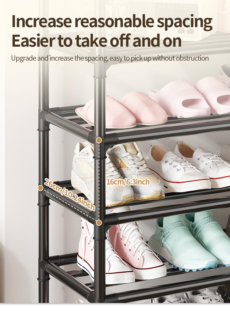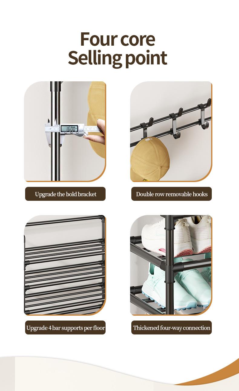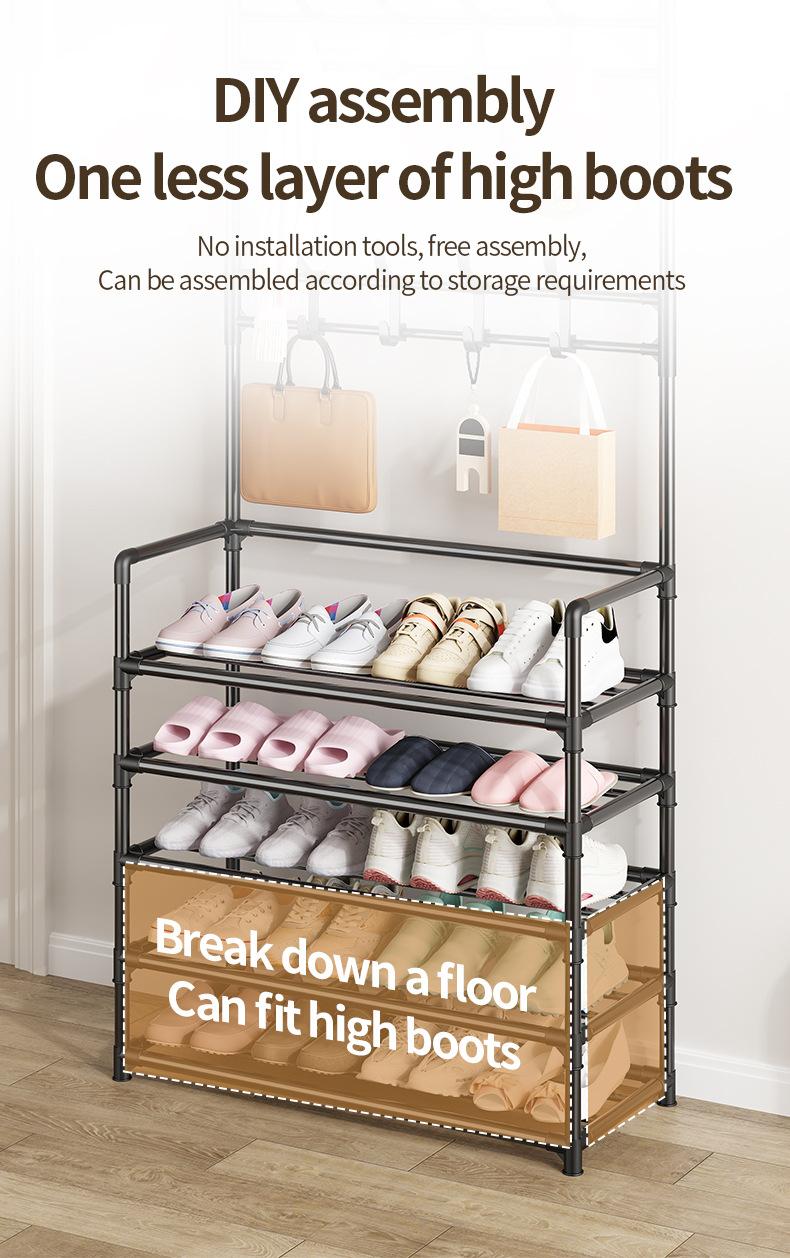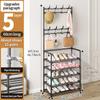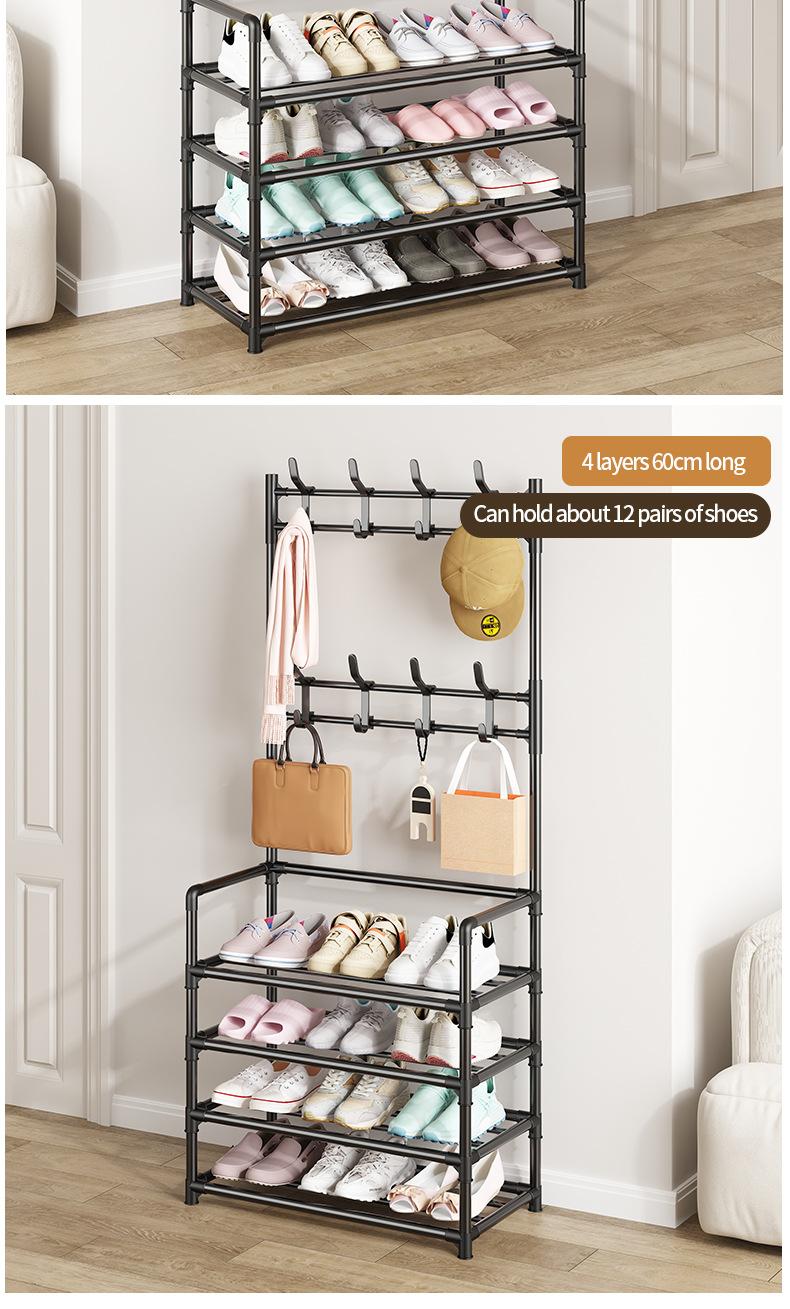 Sapateira simples e cabide para chapéus, porta de tubo grosso, cabide integrado para uso doméstico, armário para sapatos de várias camadas, cabideiro de chão