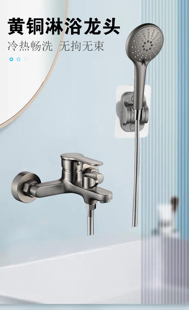 Torneira de banheira de cobre Válvula de mistura de chuveiro Banheiro doméstico Haste de elevação Botão Abertura lateral Torneira de chuveiro tripla