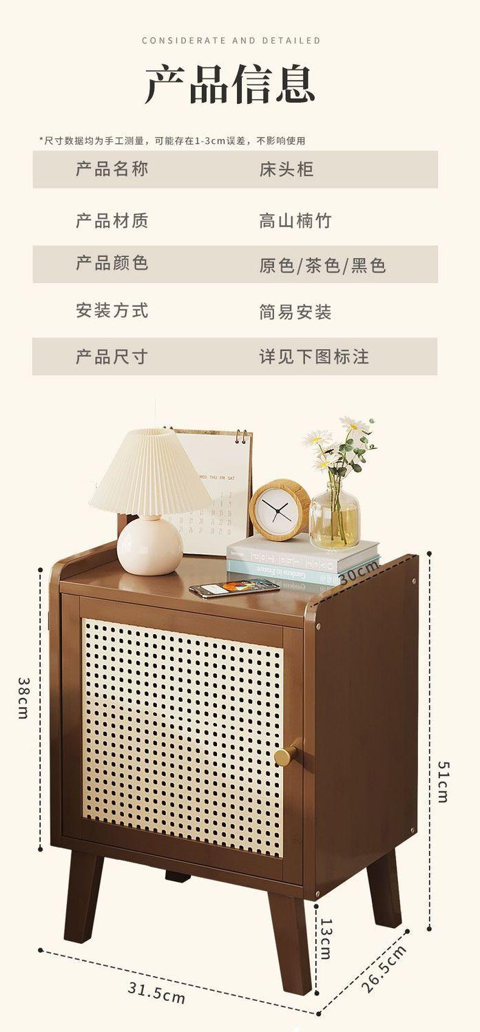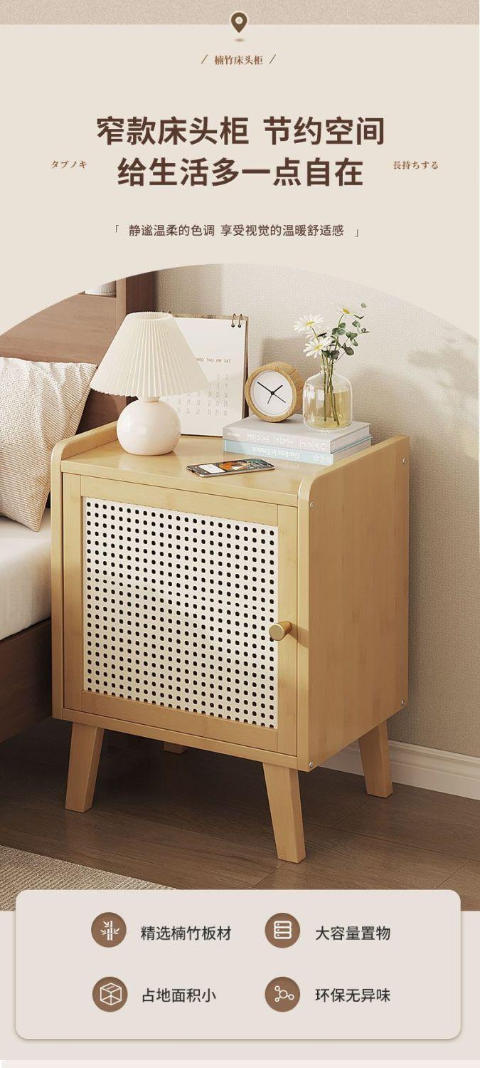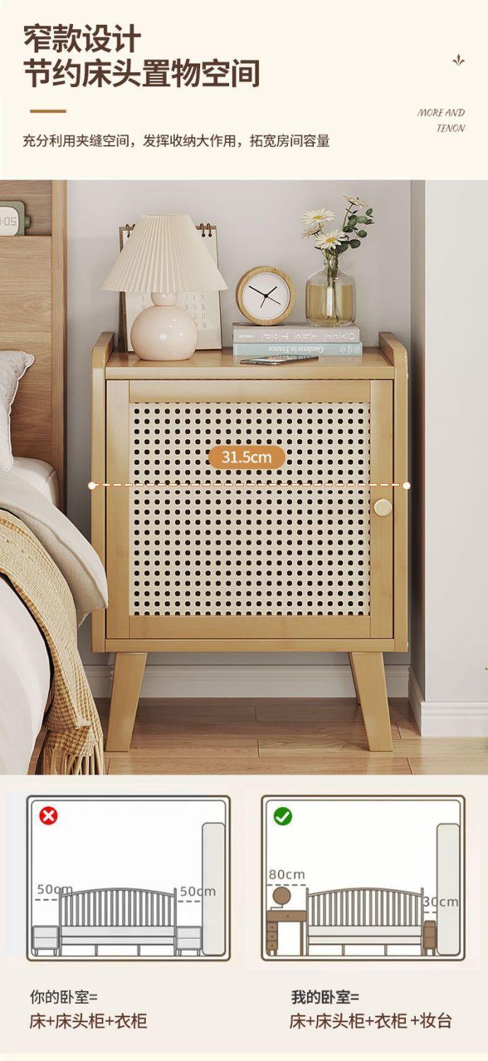 Mesa de cabeceira de madeira maciça, armário de armazenamento simples e moderno, pequeno apartamento, armário de armazenamento de vime, estilo japonês, armário lateral de sofá nórdico para quarto