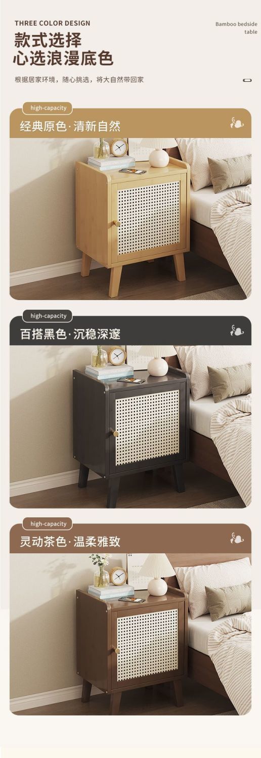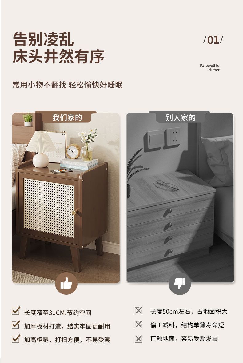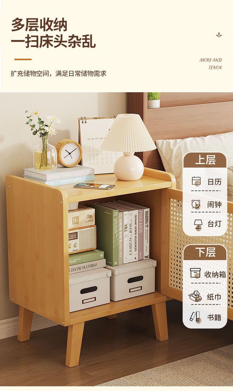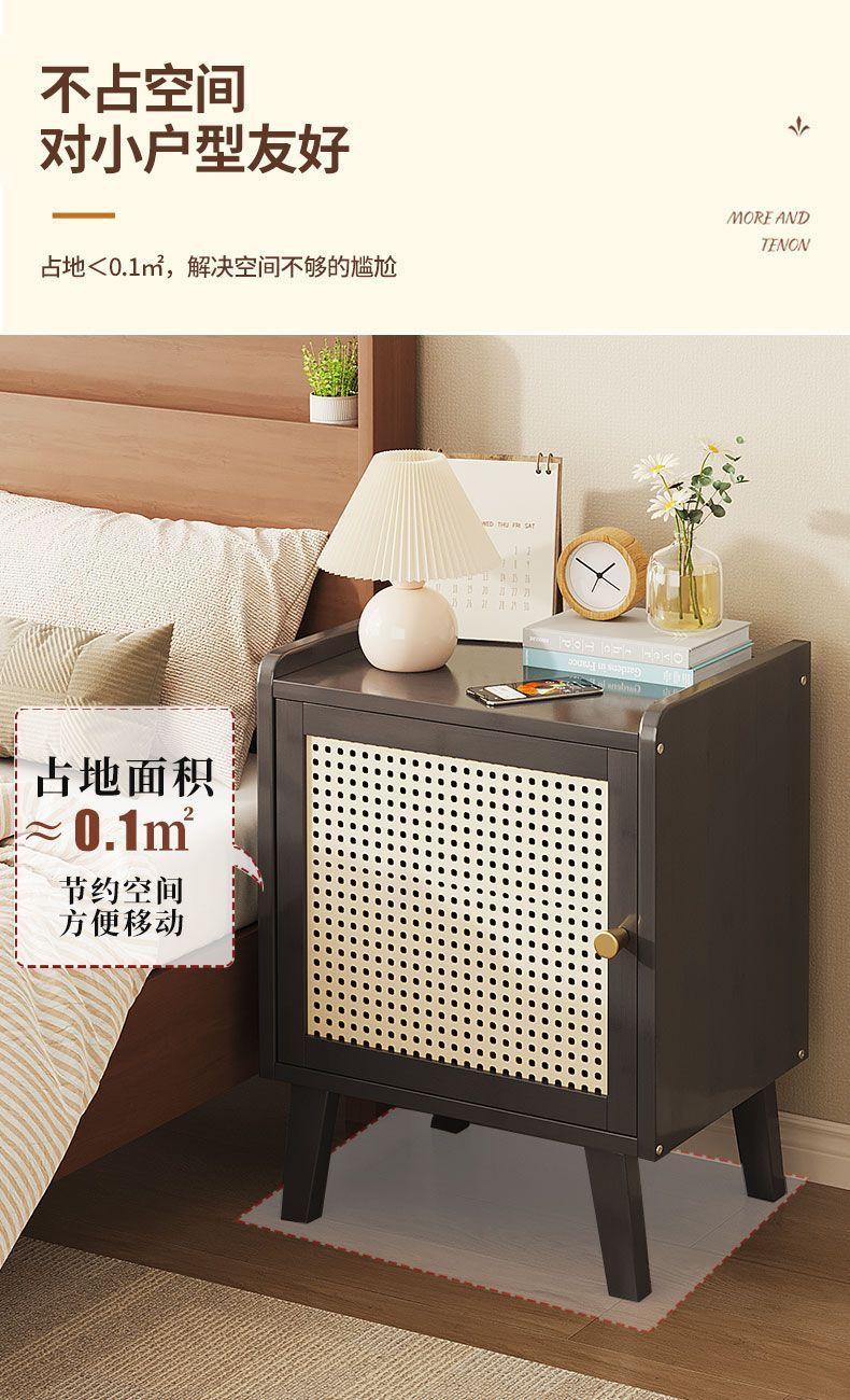 Mesa de cabeceira de madeira maciça, armário de armazenamento simples e moderno, pequeno apartamento, armário de armazenamento de vime, estilo japonês, armário lateral de sofá nórdico para quarto