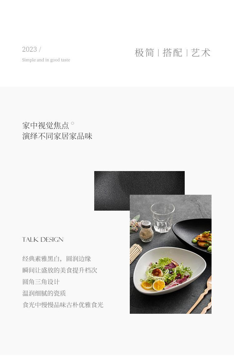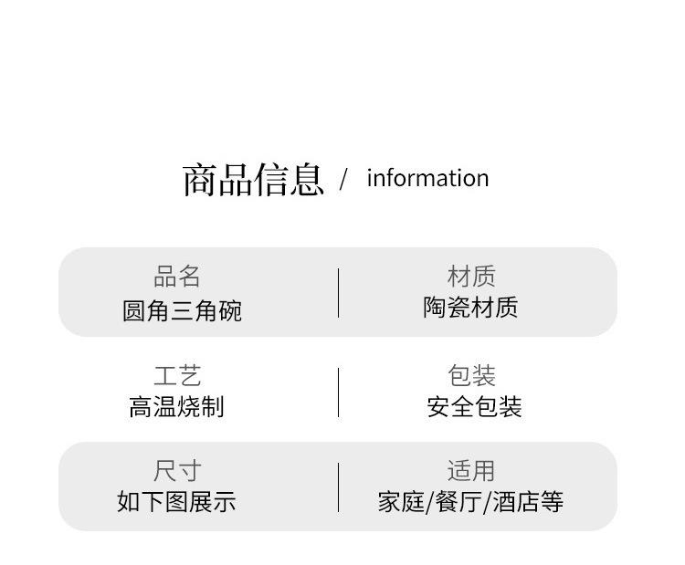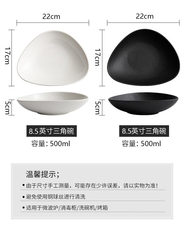 8.5inch bright white rounded corner triangular bowl, 8.5inch frosted black rounded corner triangular bowl