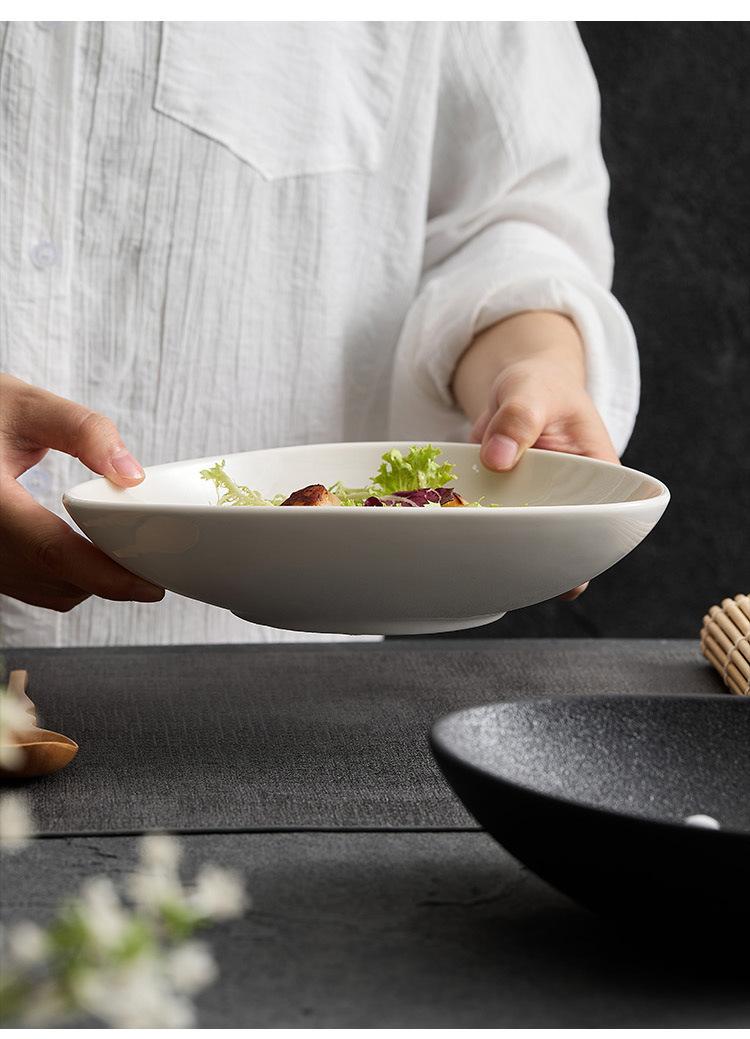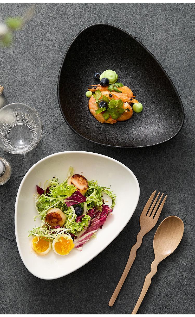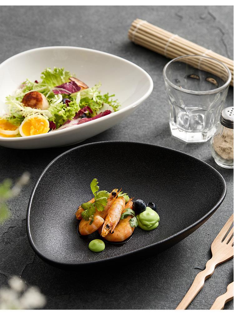 Prato Criativo Triangular para Salada de Frutas Utensílio de Mesa Doméstico de Cerâmica Prato de Jantar Japonês com Formato Especial Prato Estilo Ins Prato para Sobremesa