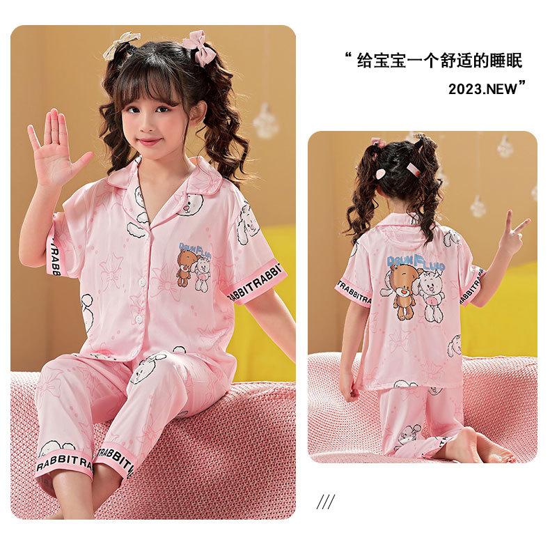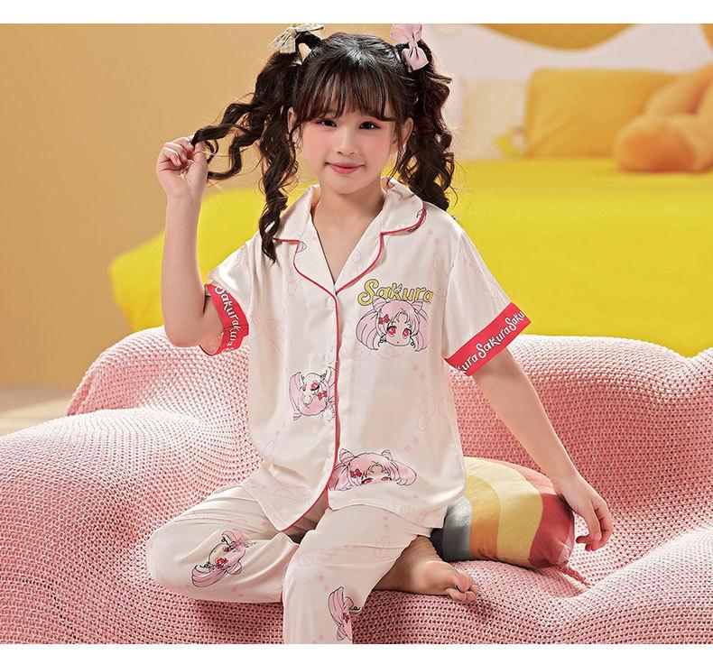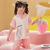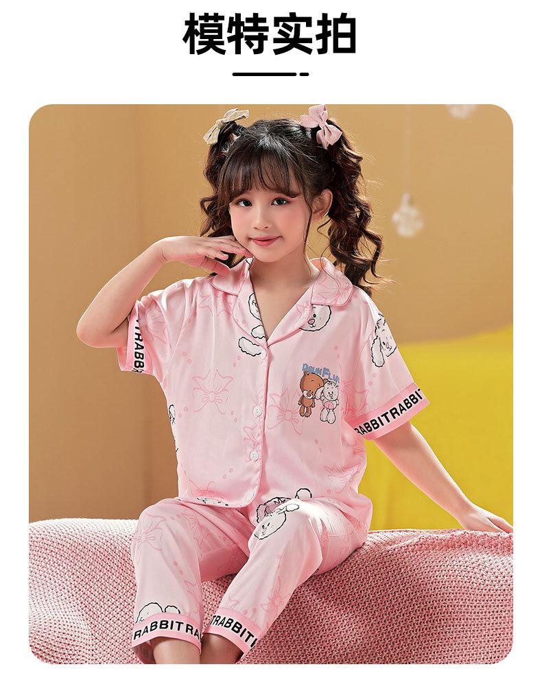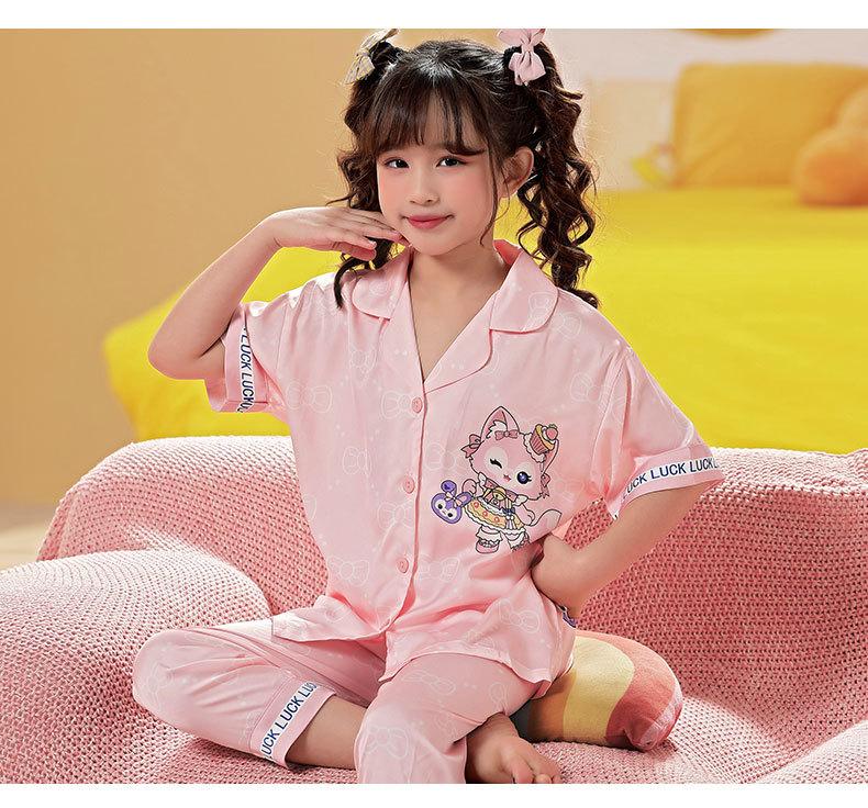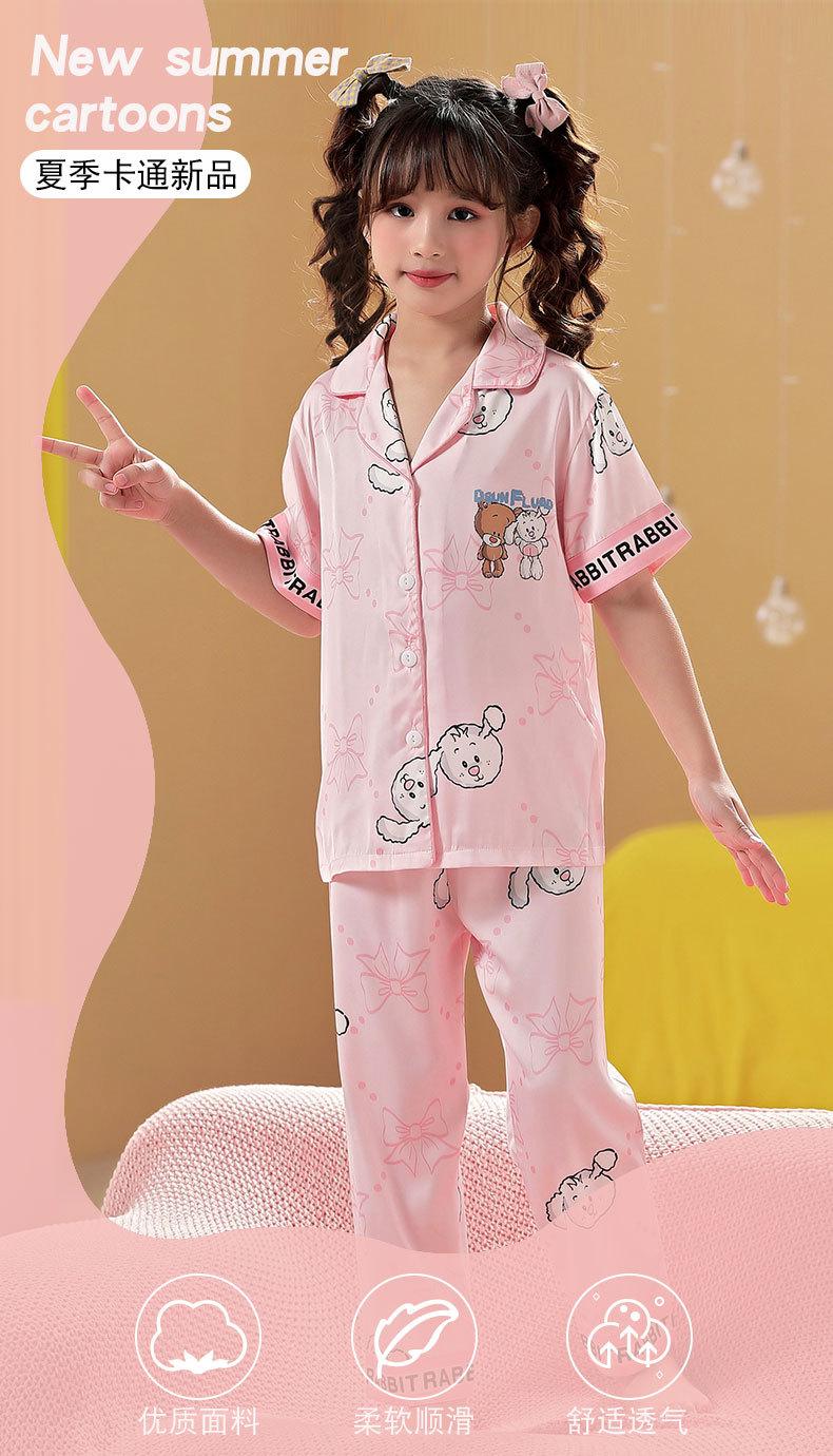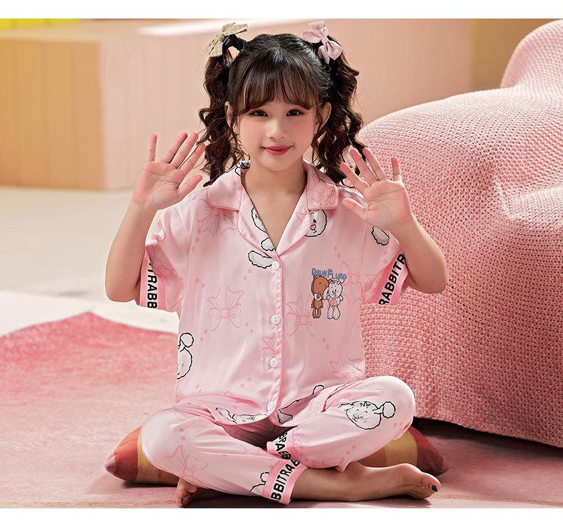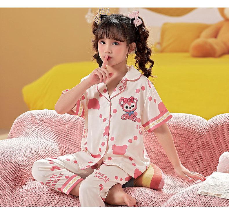 2023 pijamas infantis meninas verão gelo seda fina manga curta calças bonito verão homewear para meninas
