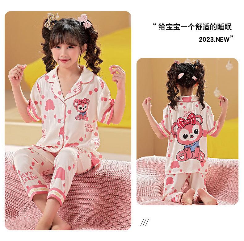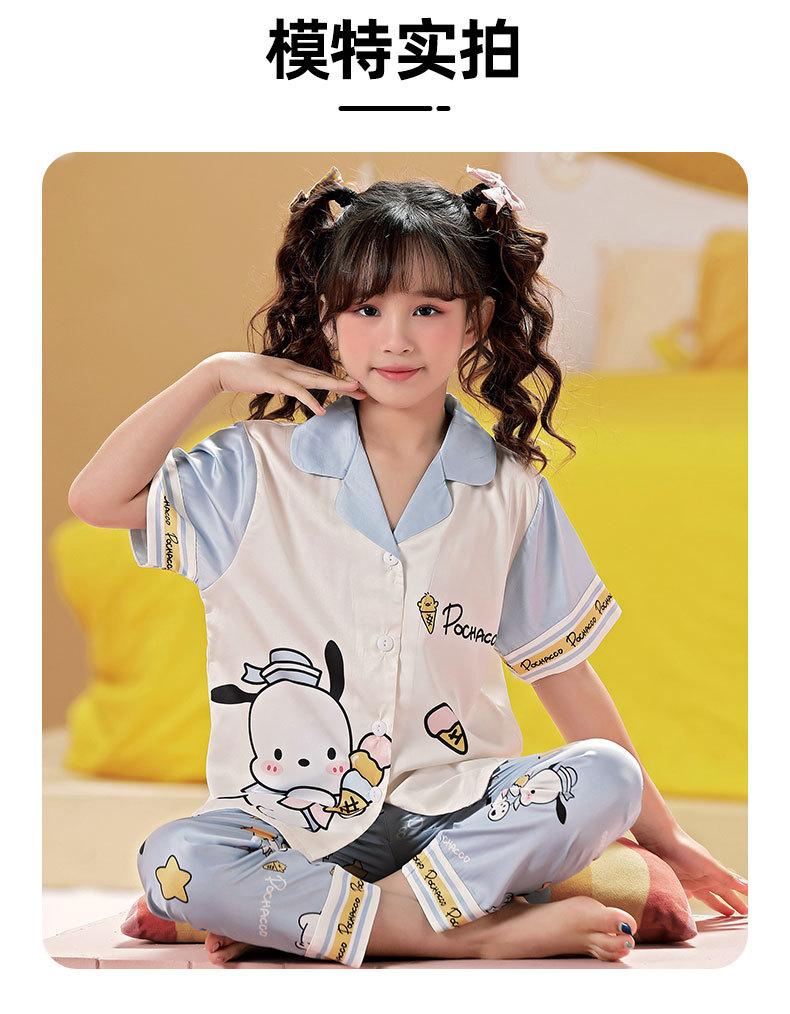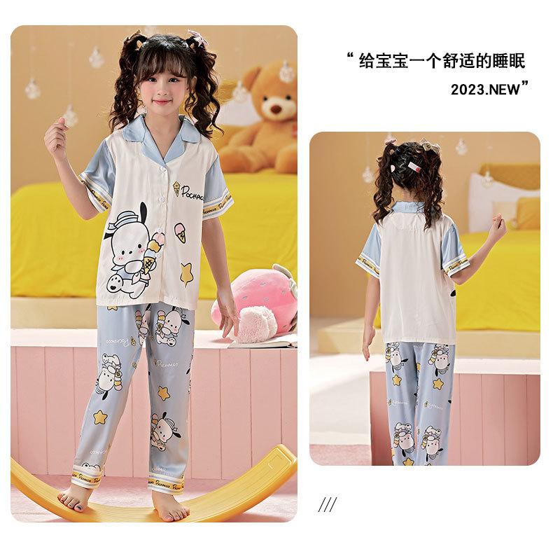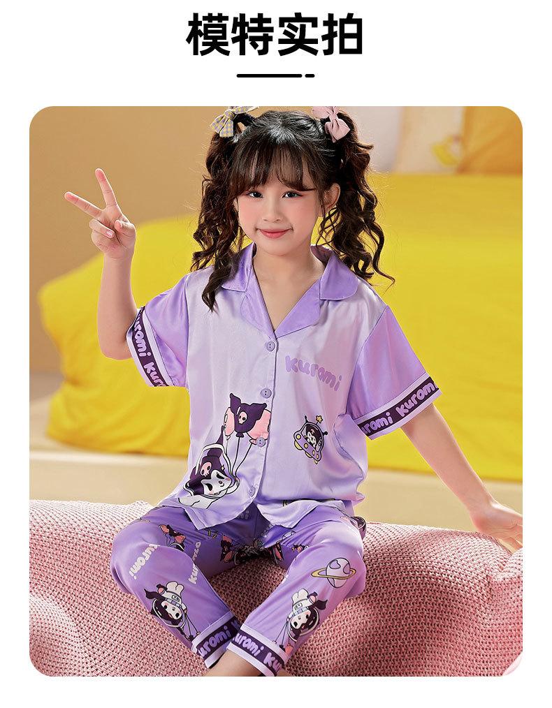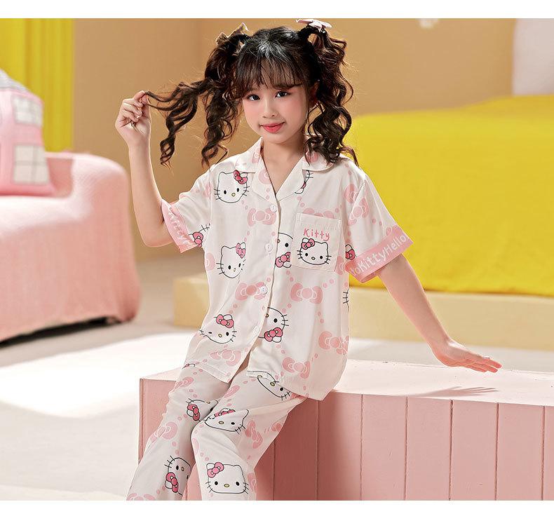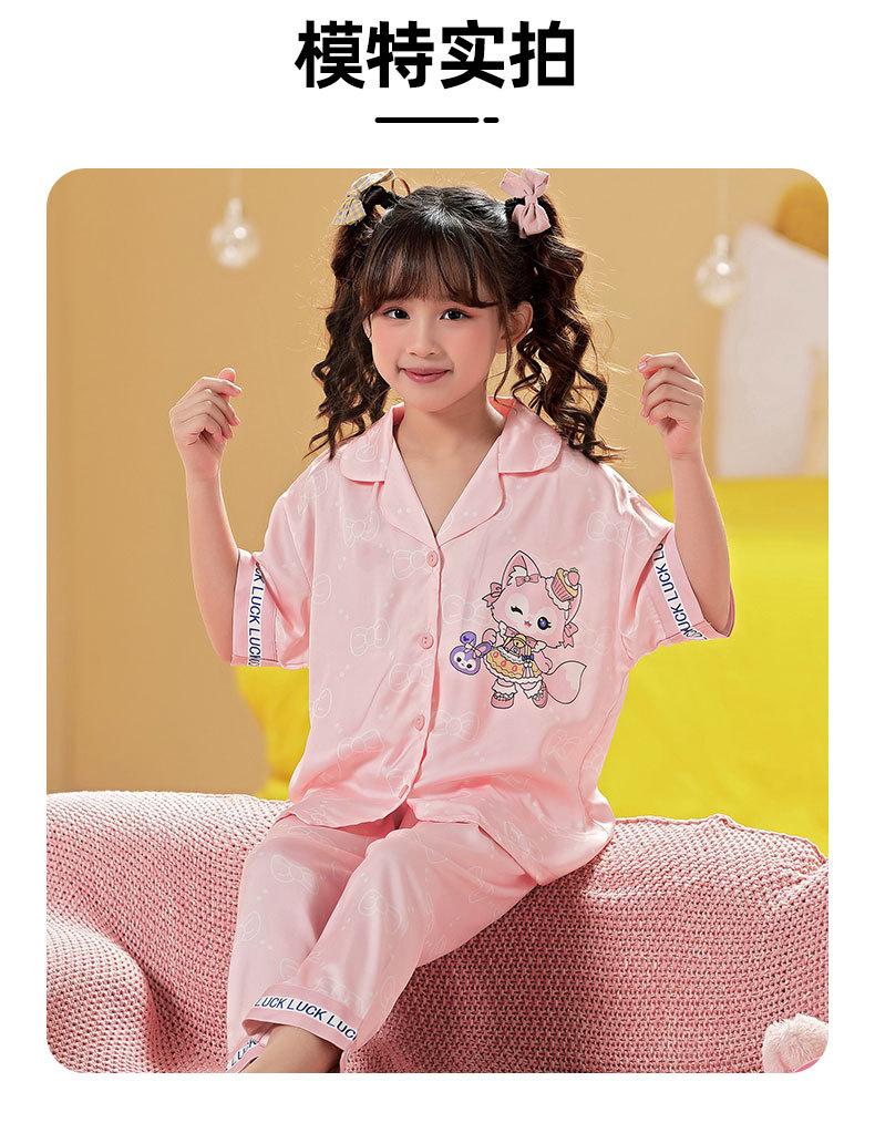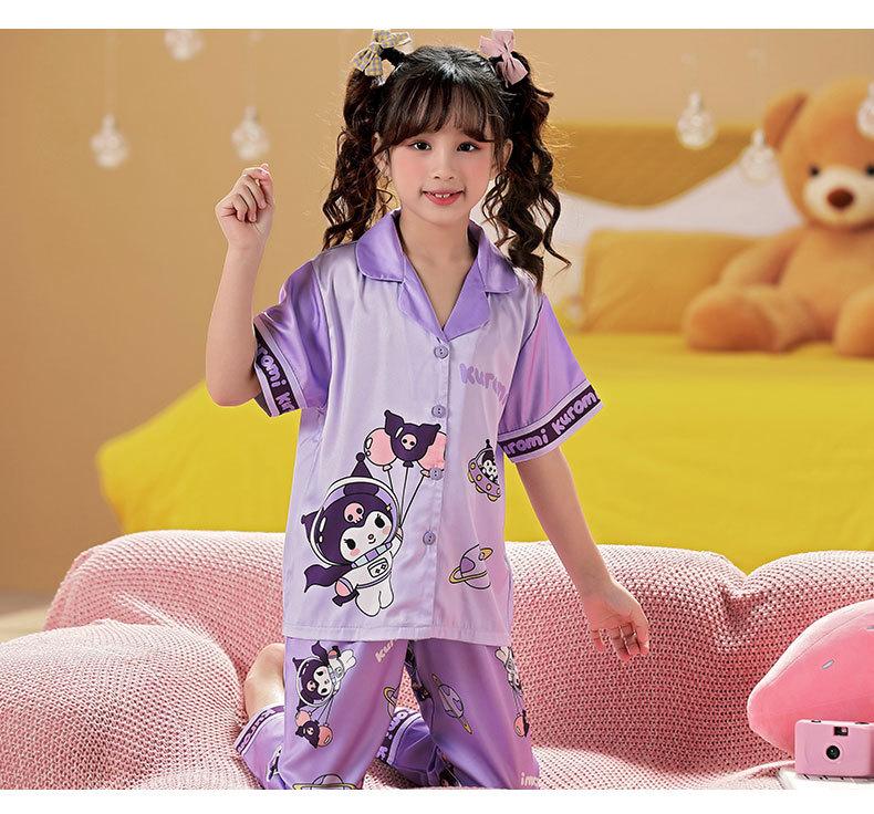 2023 pijamas infantis meninas verão gelo seda fina manga curta calças bonito verão homewear para meninas