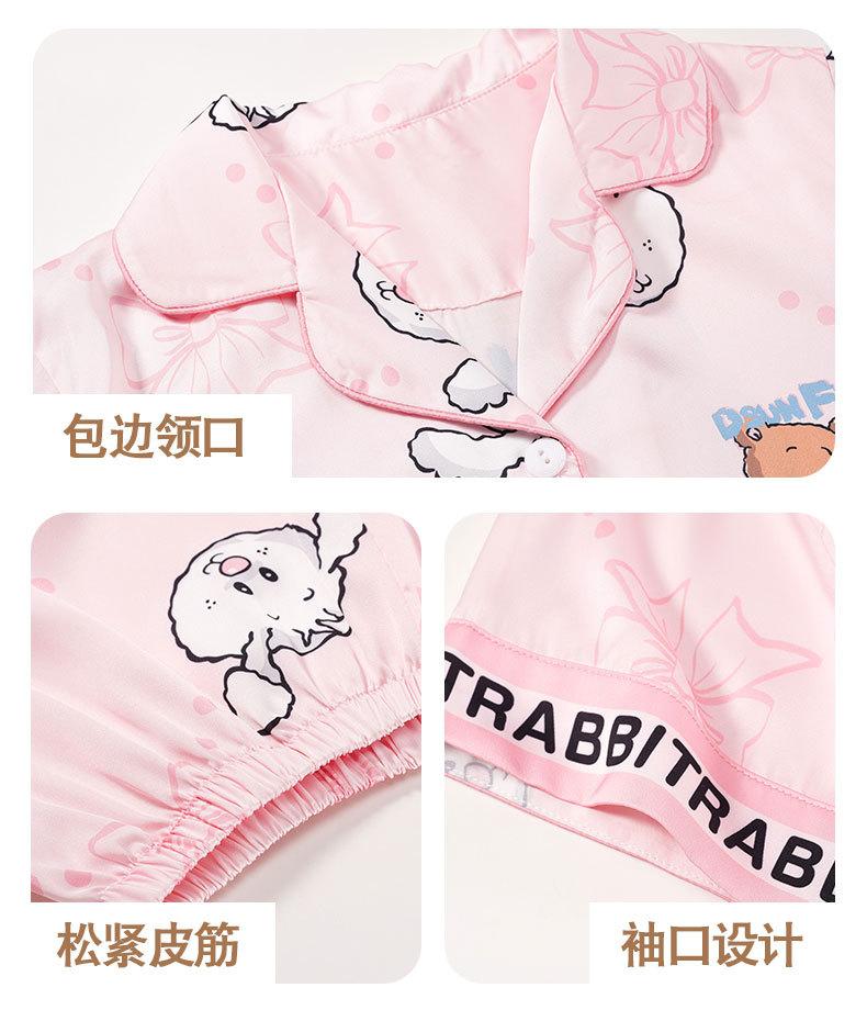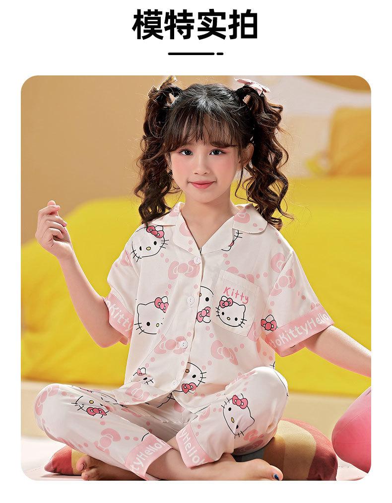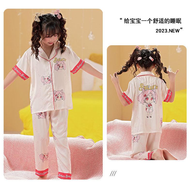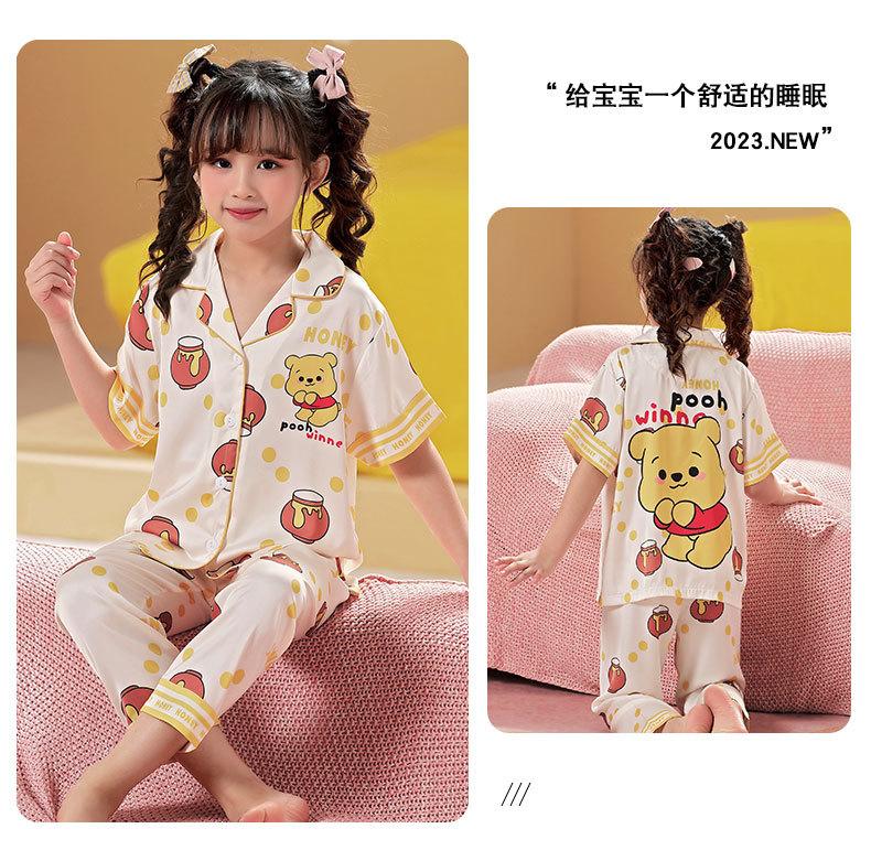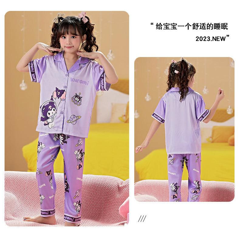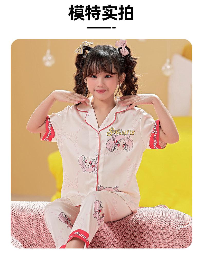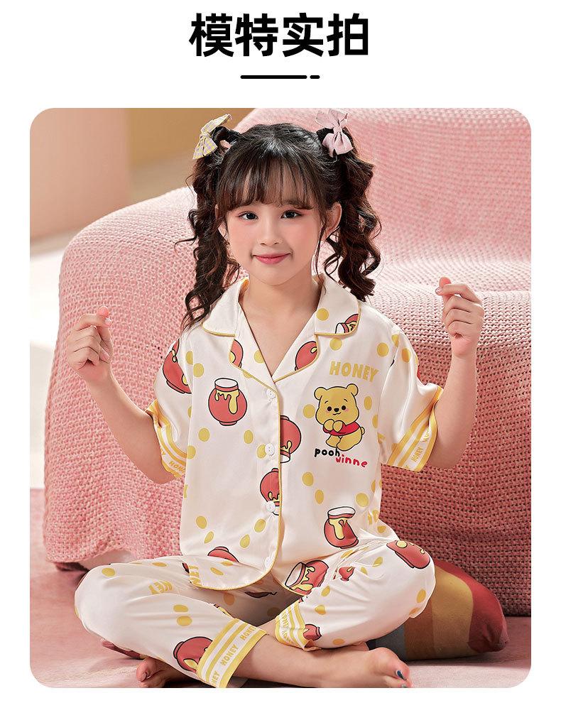 2023 pijamas infantis meninas verão gelo seda fina manga curta calças bonito verão homewear para meninas