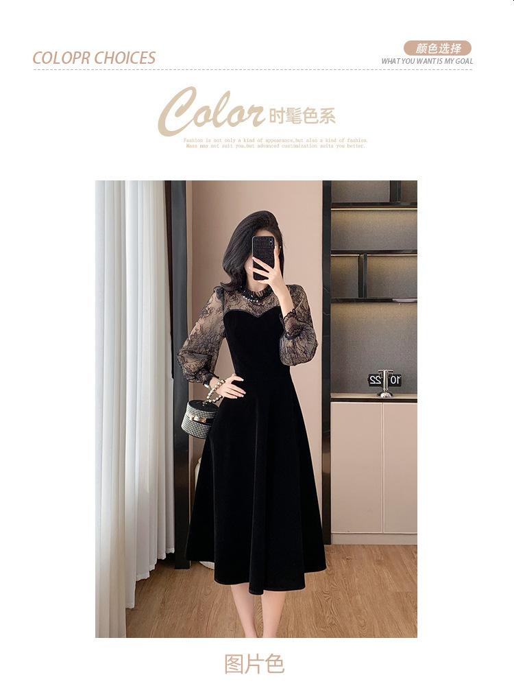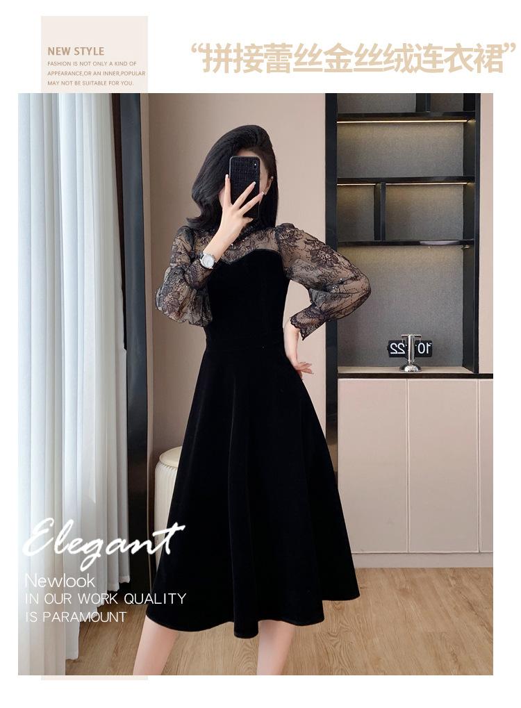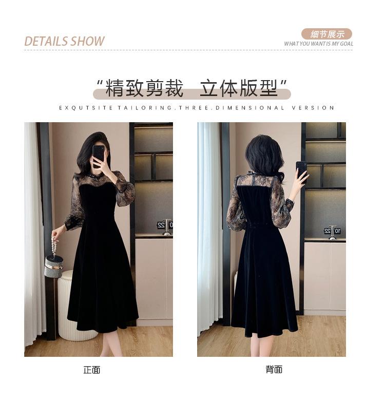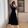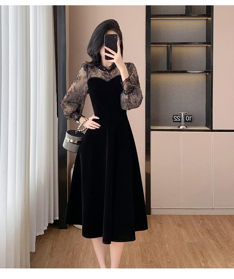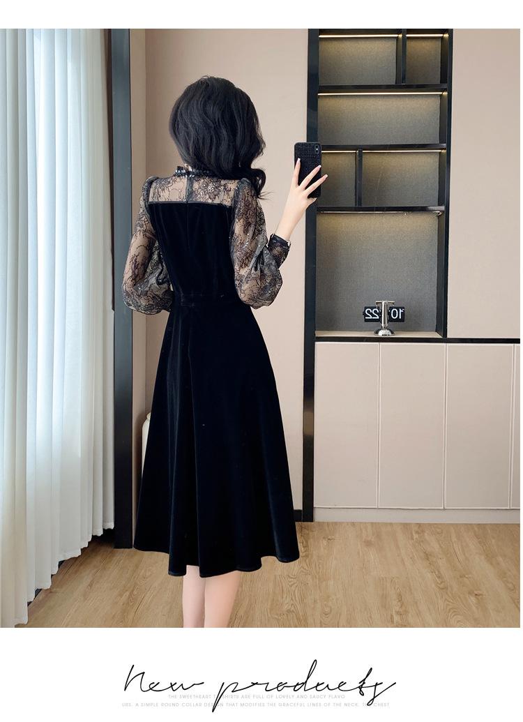 Vestido de veludo preto estilo francês Hepburn feminino outono e inverno novo estilo design sentido elegante cintura justa emagrecimento saia interna