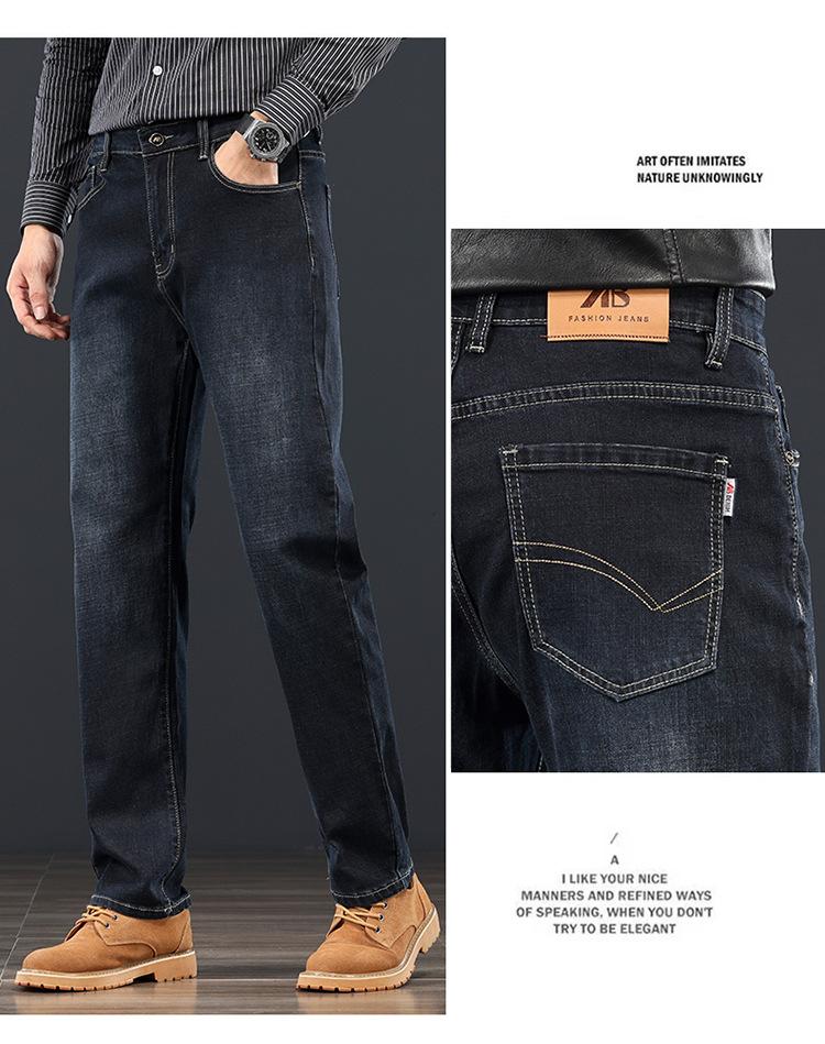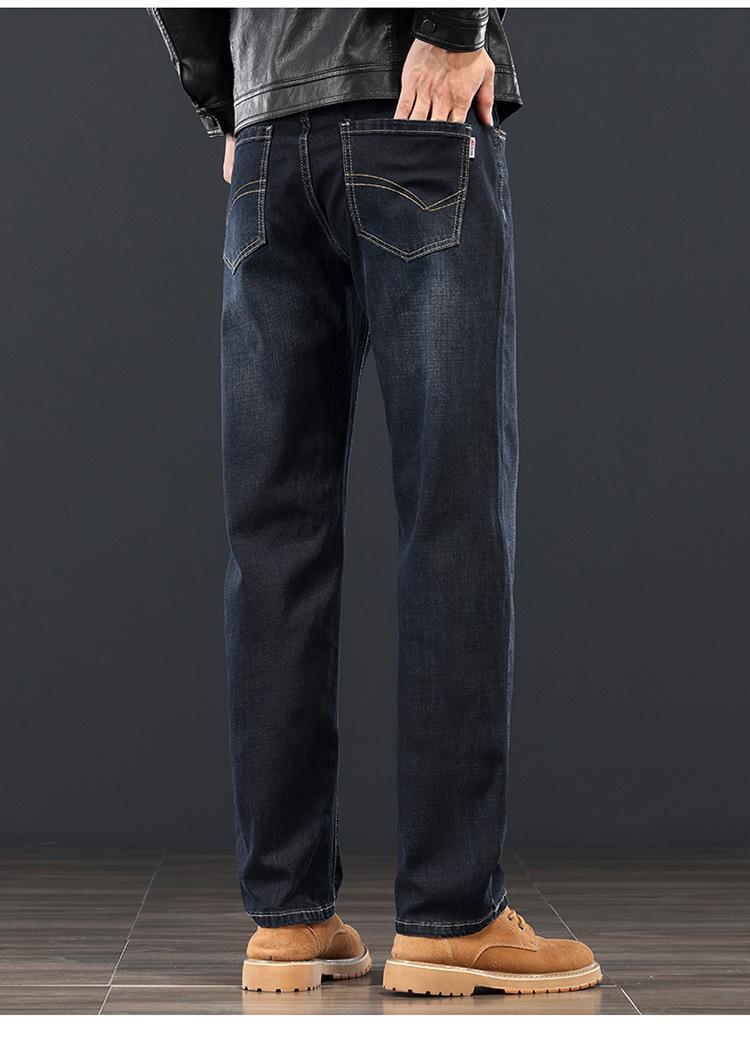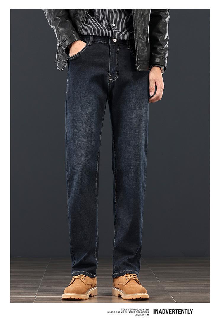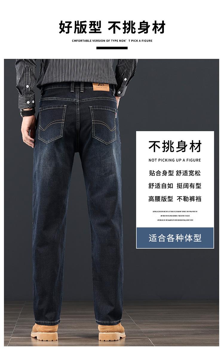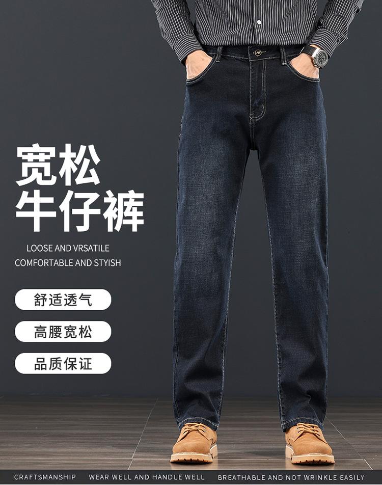 Compre 2024 Calça Jeans Solta de Perna Reta Masculina de Alta Qualidade Casual Negócios Leve Luxo Meia-idade Stretch Calças de Cintura Alta no atacado no Joom.pro