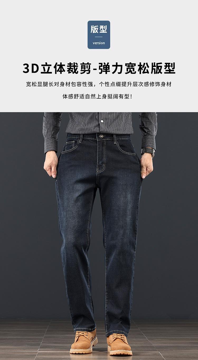 2024 Calça Jeans Solta de Perna Reta Masculina de Alta Qualidade Casual Negócios Leve Luxo Meia-idade Stretch Calças de Cintura Alta