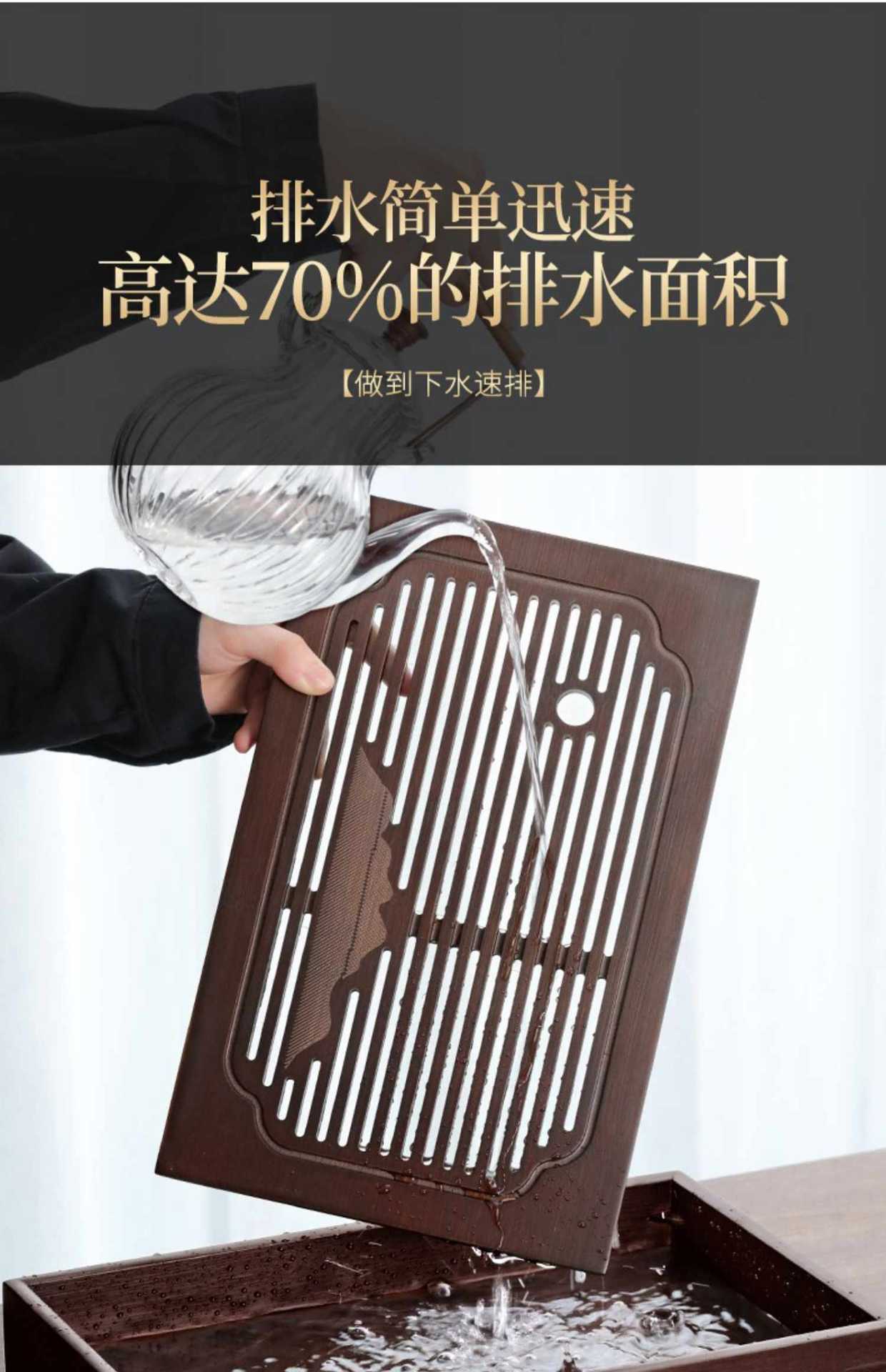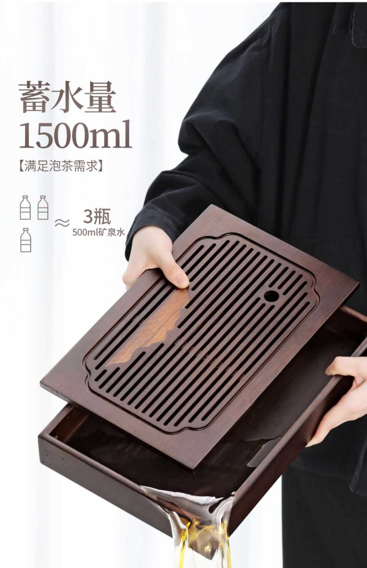 Bandeja de chá retangular de bambu para uso doméstico 2024, nova bandeja simples, conjunto de chá de madeira maciça, bolha seca, pequeno armazenamento de água, mesa de chá pequena