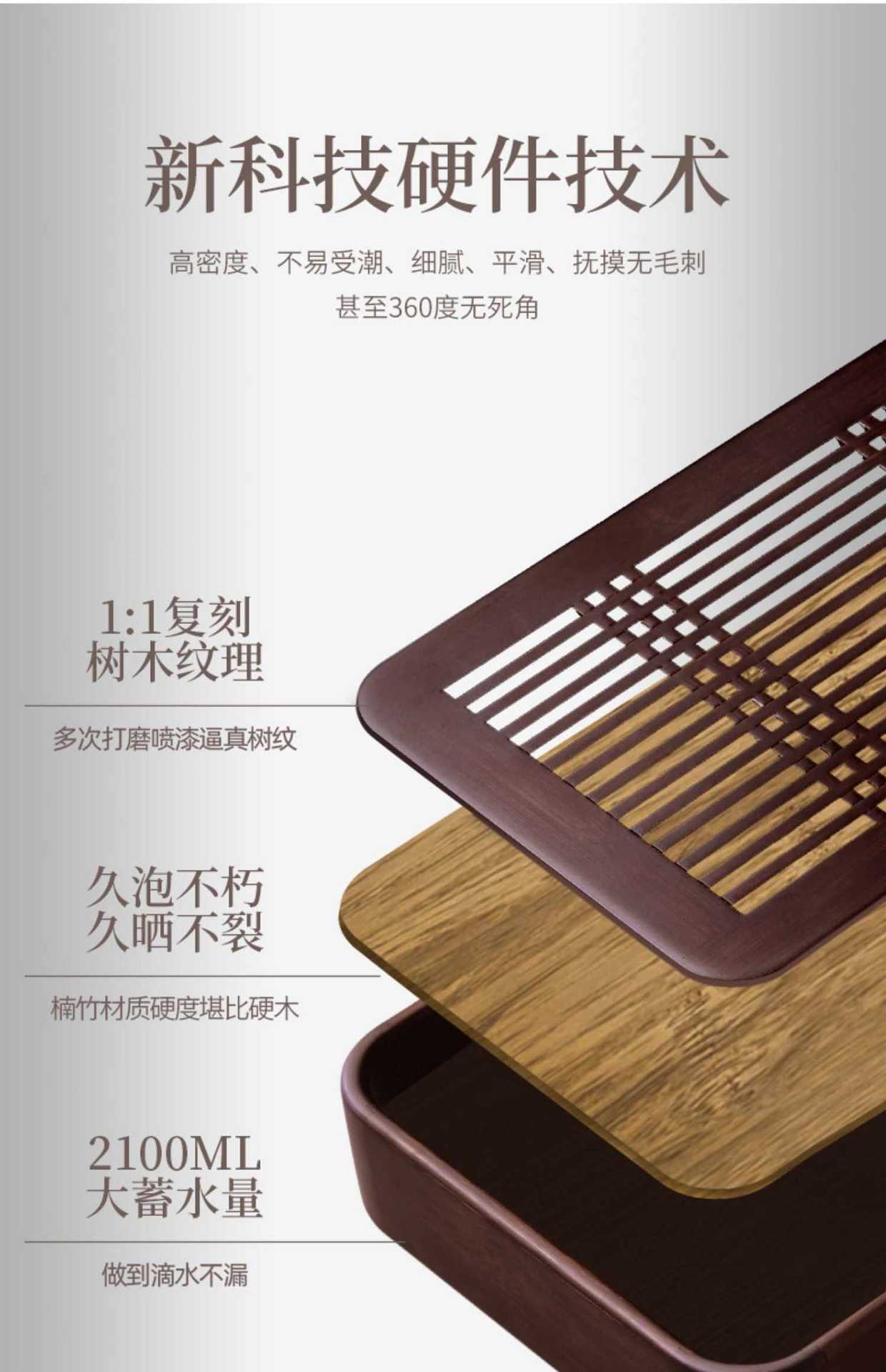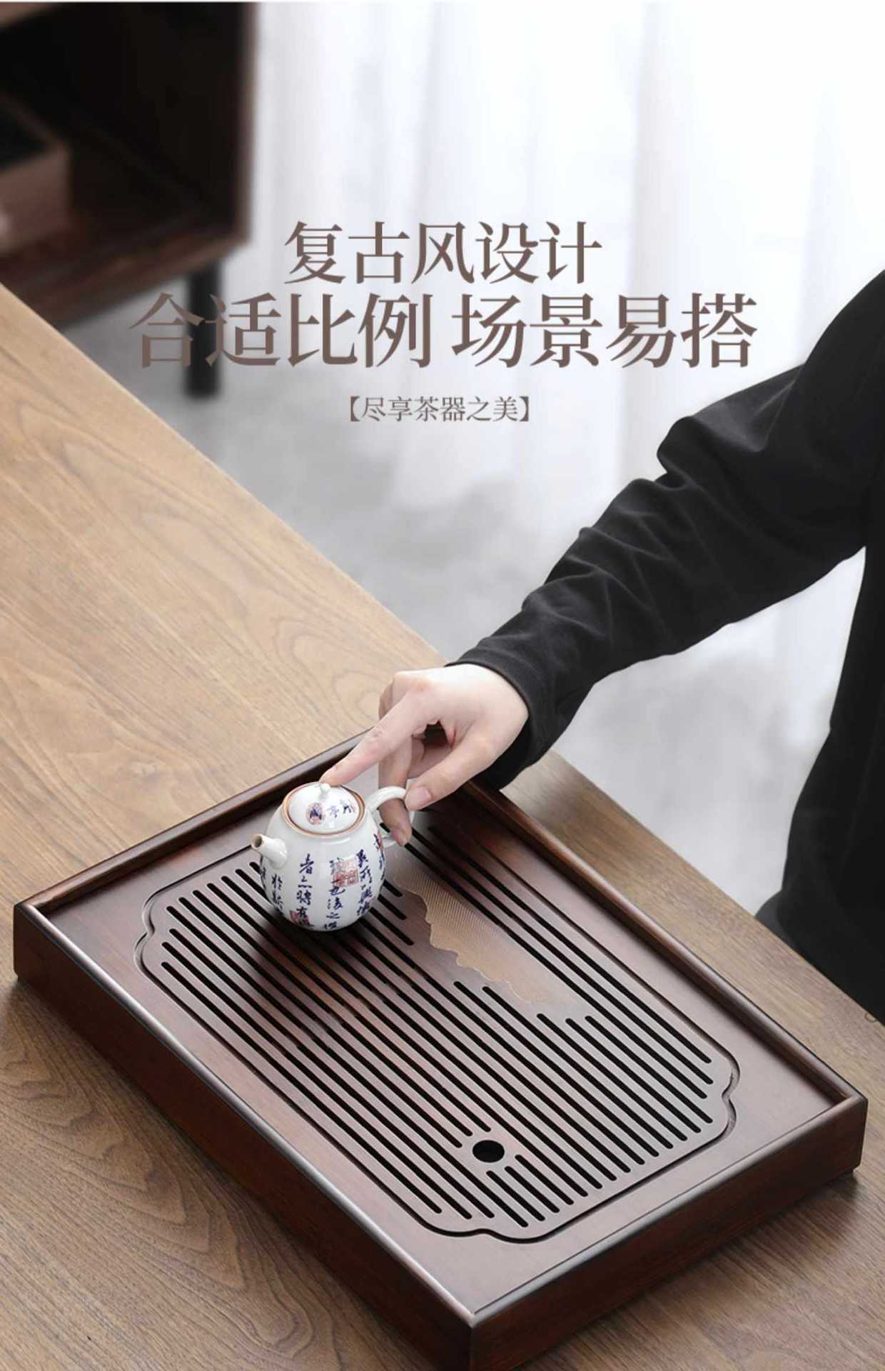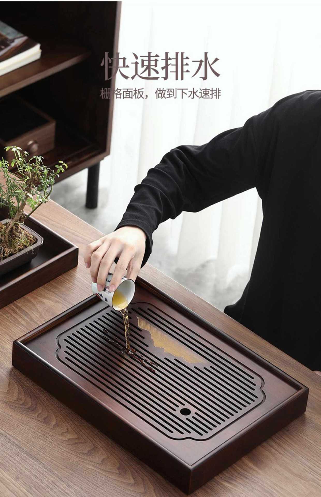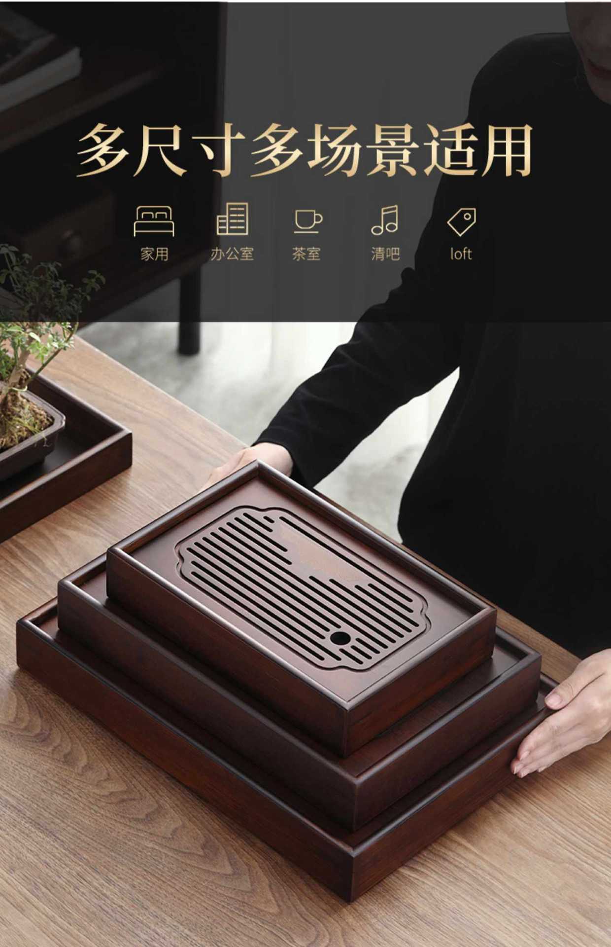 Compre Bandeja de chá retangular de bambu para uso doméstico 2024, nova bandeja simples, conjunto de chá de madeira maciça, bolha seca, pequeno armazenamento de água, mesa de chá pequena no atacado no Joom.pro