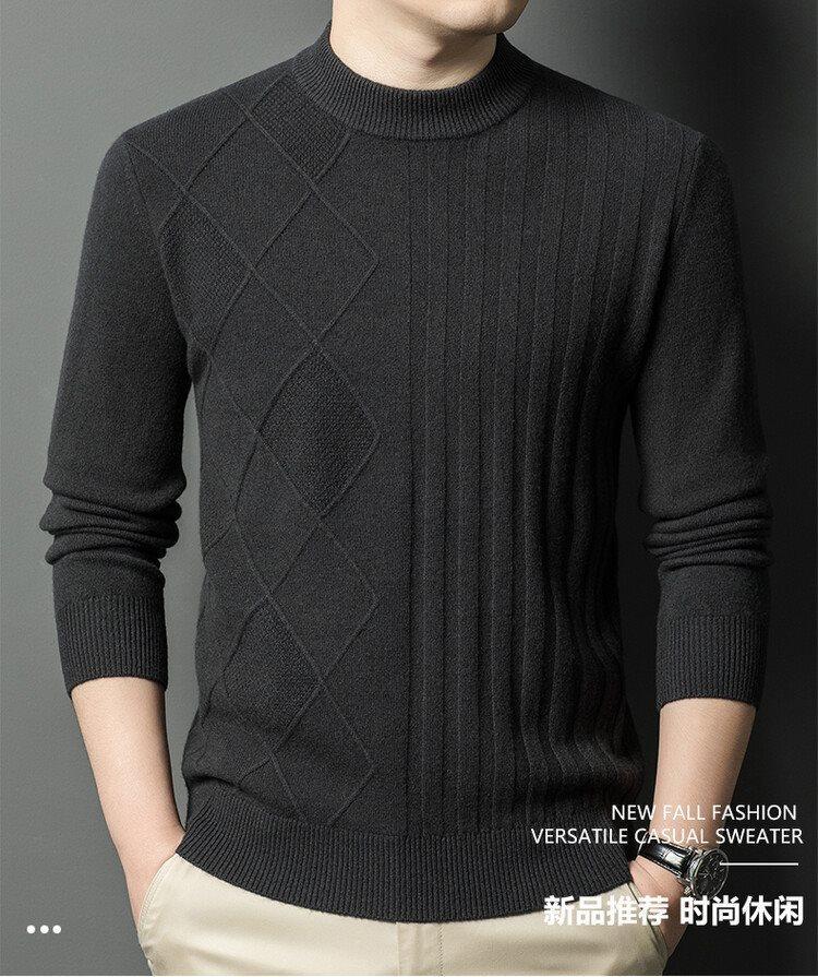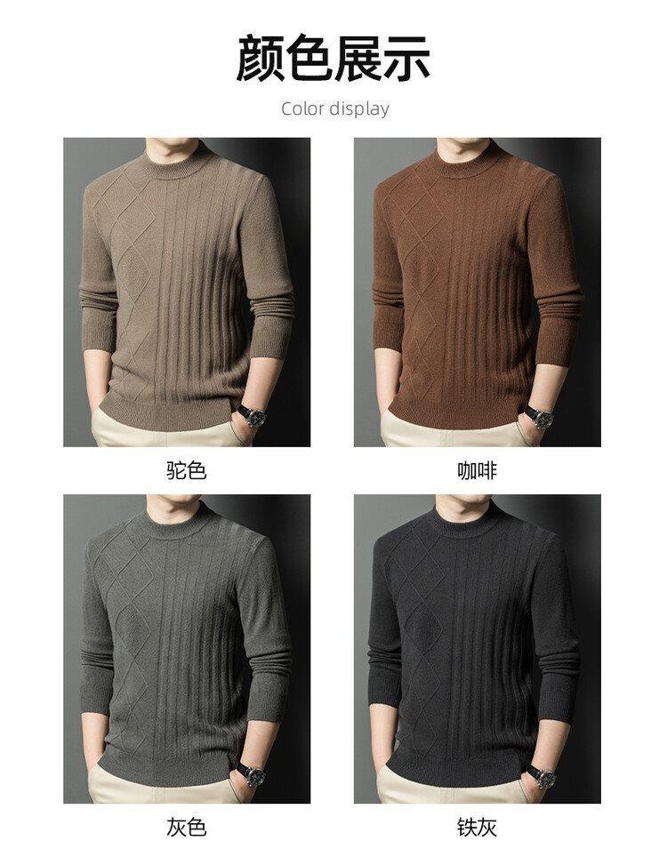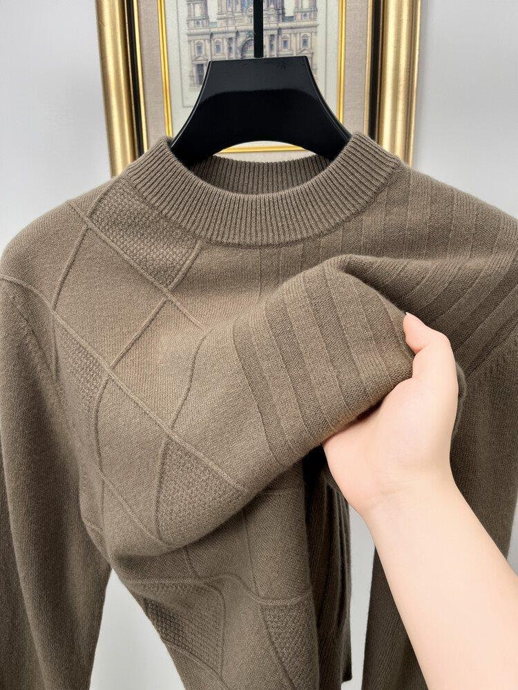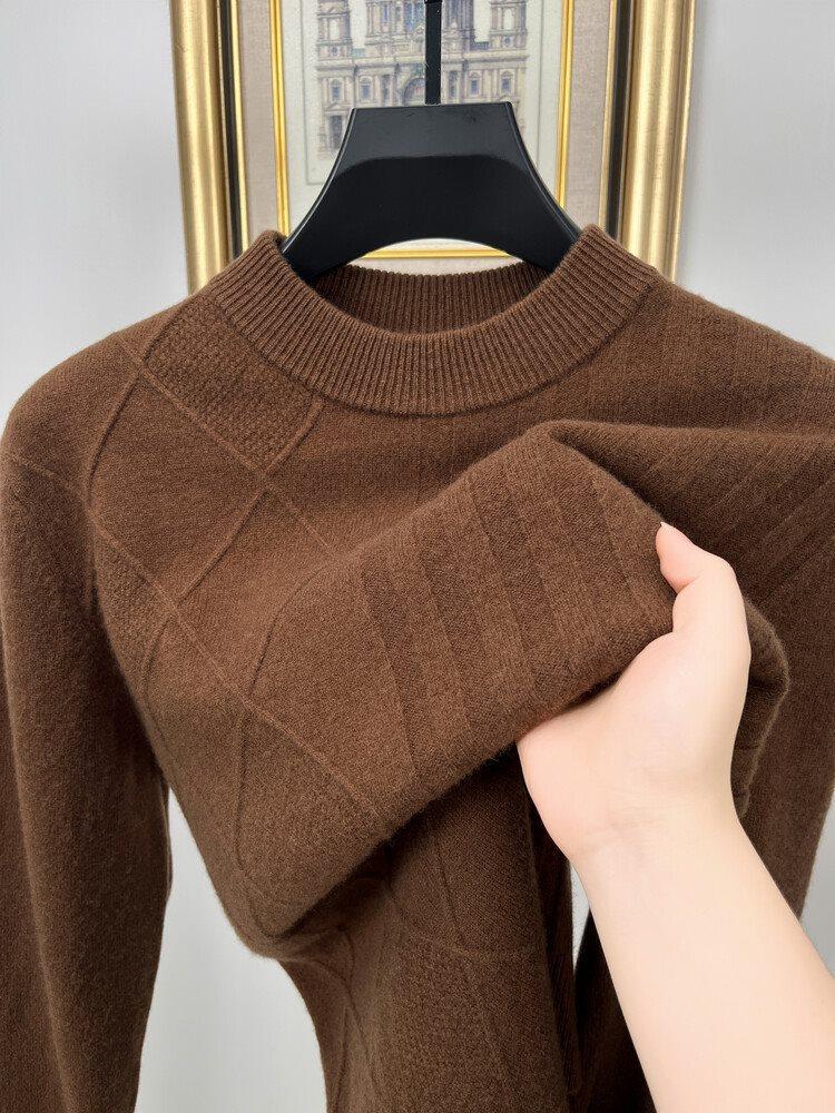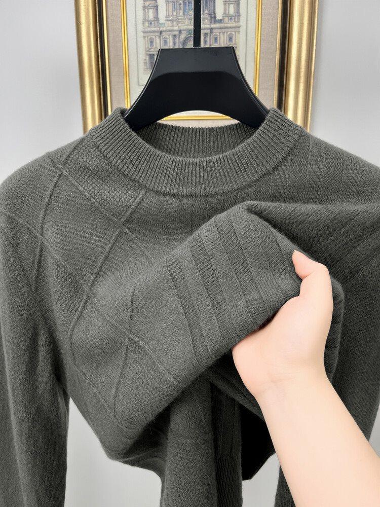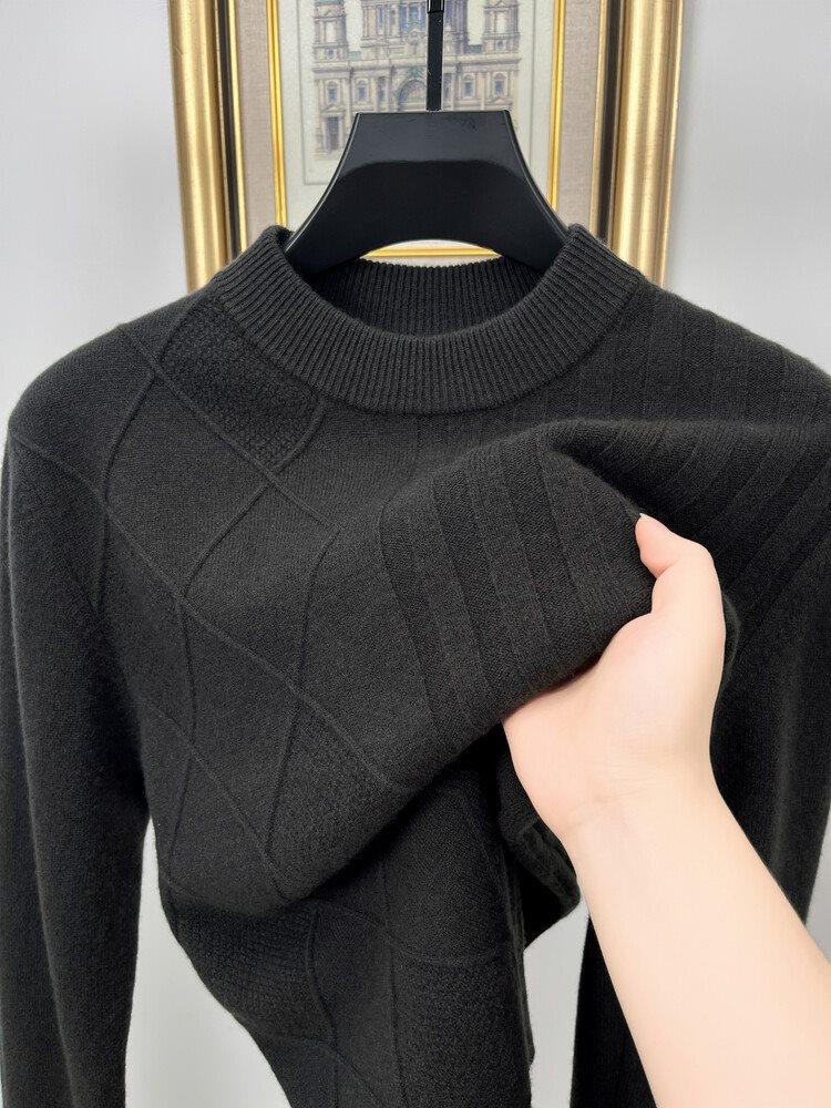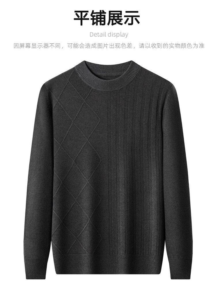 2024 Suéter Masculino 100 Outono e Inverno Gola Redonda de Meia-Idade Engrossado Quente Plus Size Camisa Base de Suéter Masculino