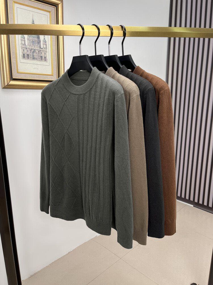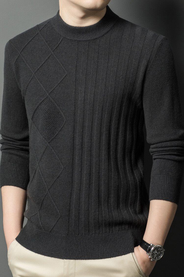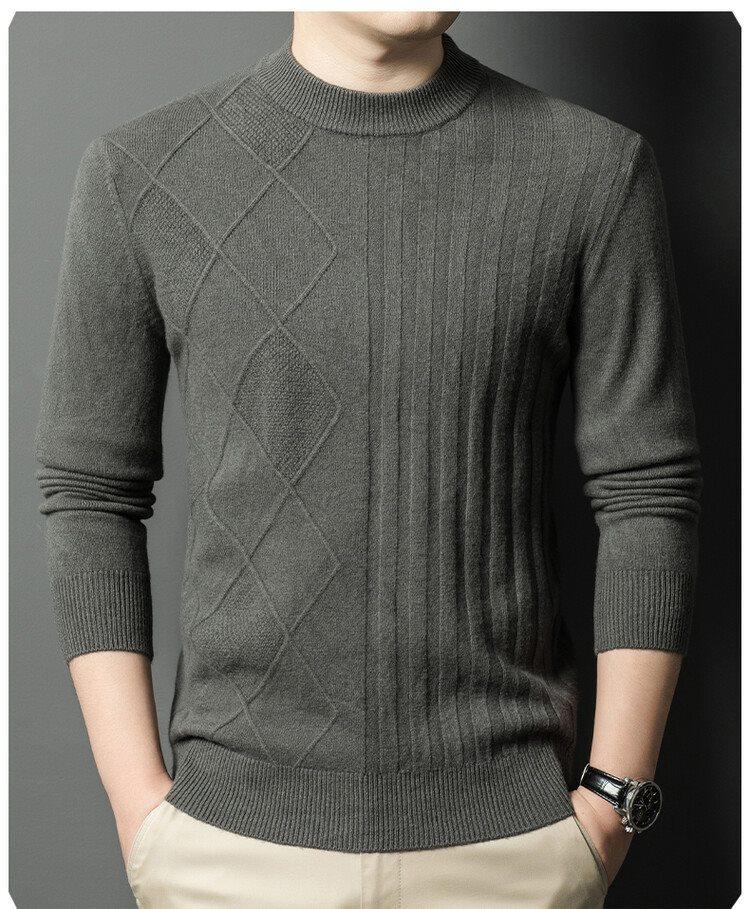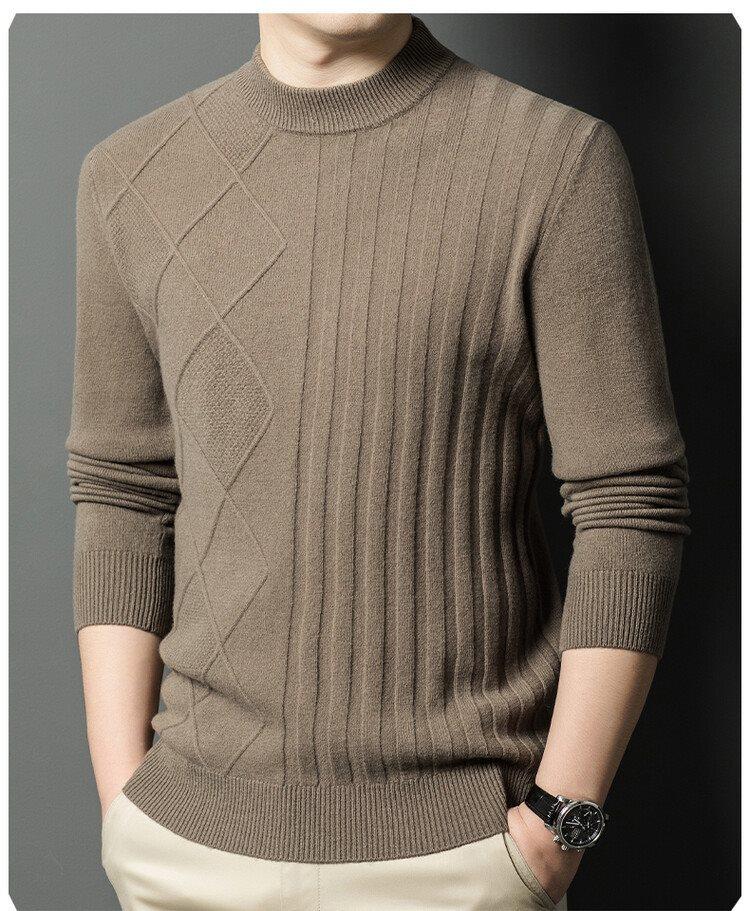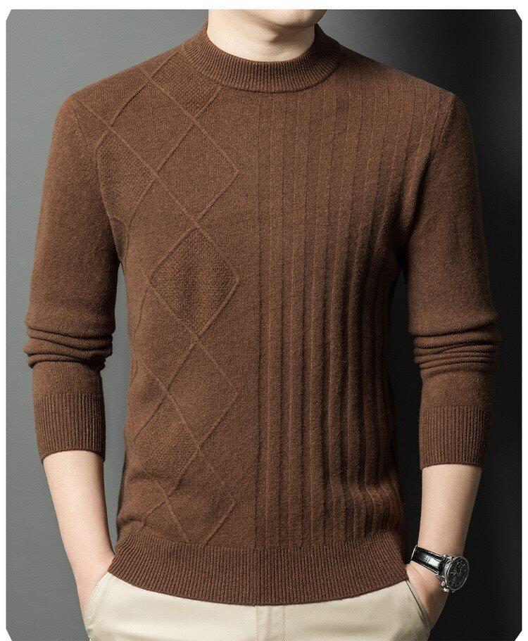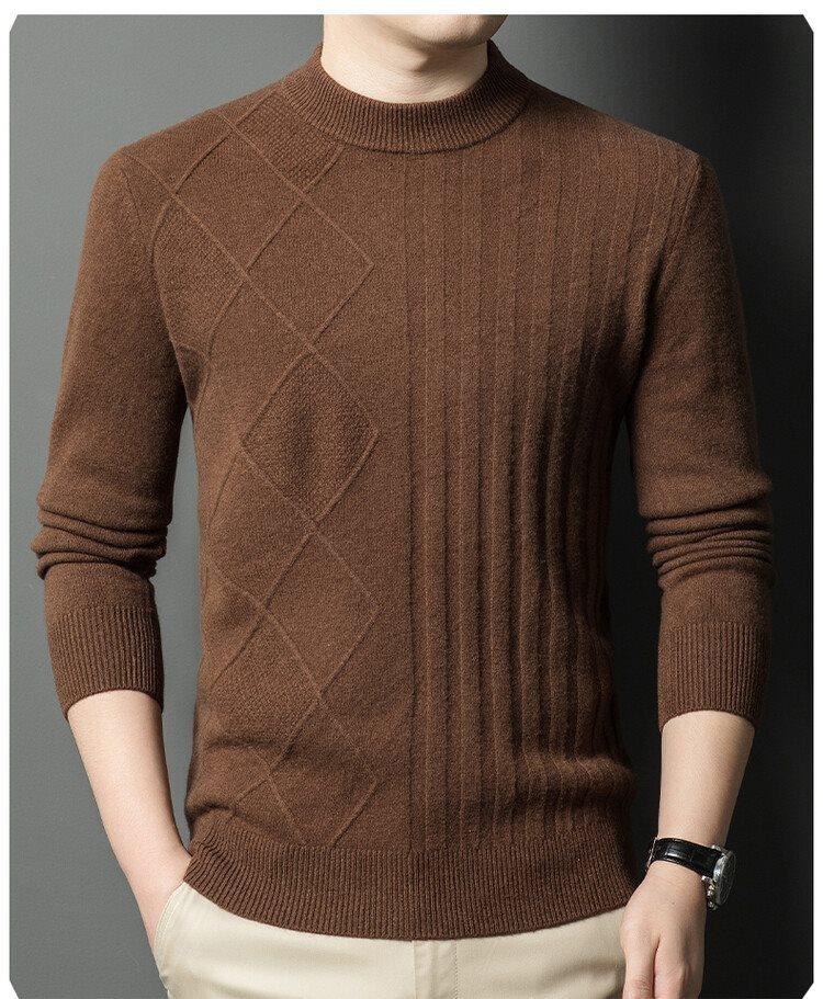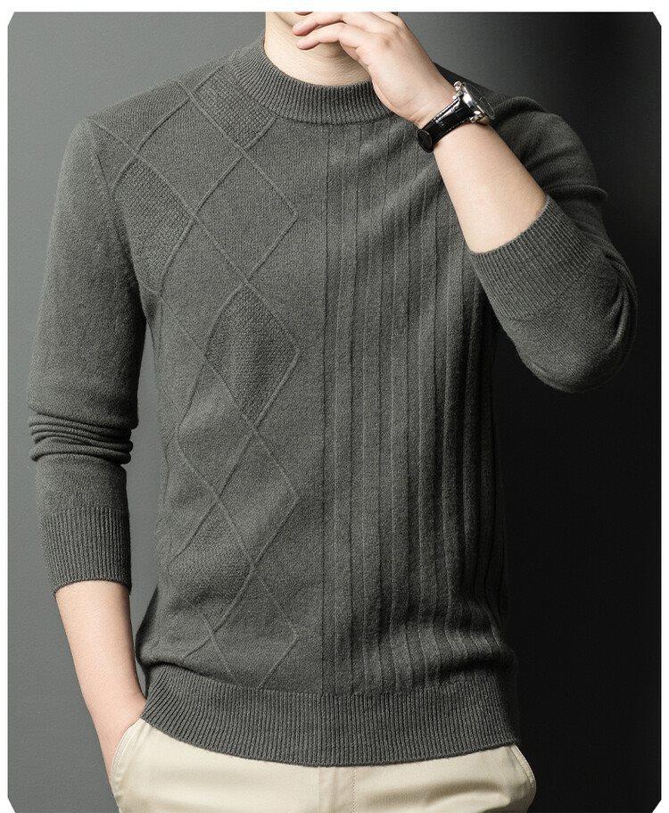 2024 Suéter Masculino 100 Outono e Inverno Gola Redonda de Meia-Idade Engrossado Quente Plus Size Camisa Base de Suéter Masculino