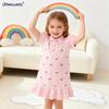 25 cross-border primavera novas meninas lapela amor impressão estilo estrangeiro vestido de manga longa cor sólida colete doce terno