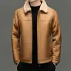 Jaqueta de Couro Retrô Americana Masculina para Primavera e Outono, Novo Estilo Gola Alta Fina Multibolsos Casaco de Couro