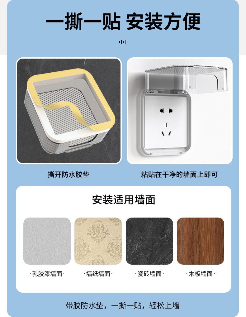 Tomada de interruptor de banheiro tipo 86 adesiva capa protetora universal à prova d'água luz de banheiro luxo caixa de embutir à prova de respingos