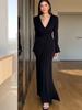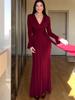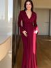 Primavera 2025 Novo vestido europeu e americano transfronteiriço Amazon com decote em V manga de chifre cintura justa rabo de peixe
