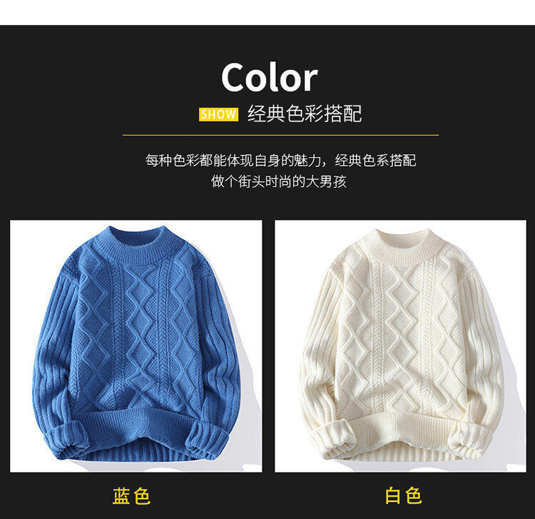 2025 Primavera e Outono Comércio Exterior Novos Homens Cor Sólida Pulôver Suéter Masculino Casual Solto Malha Base Camisa Suéter