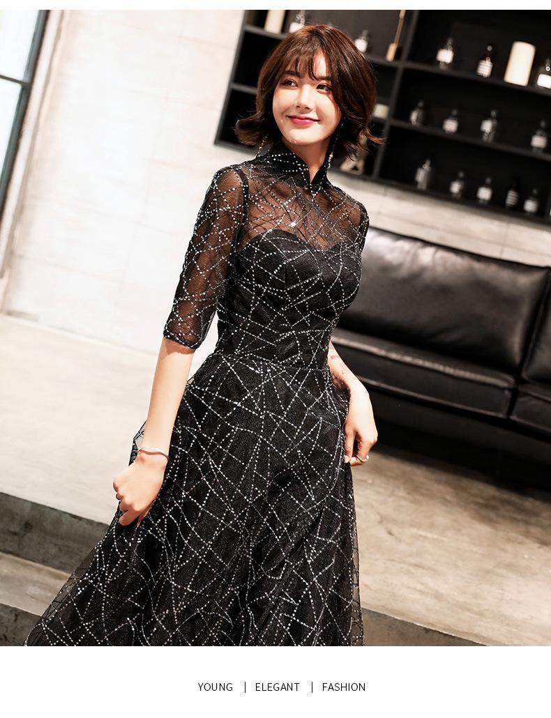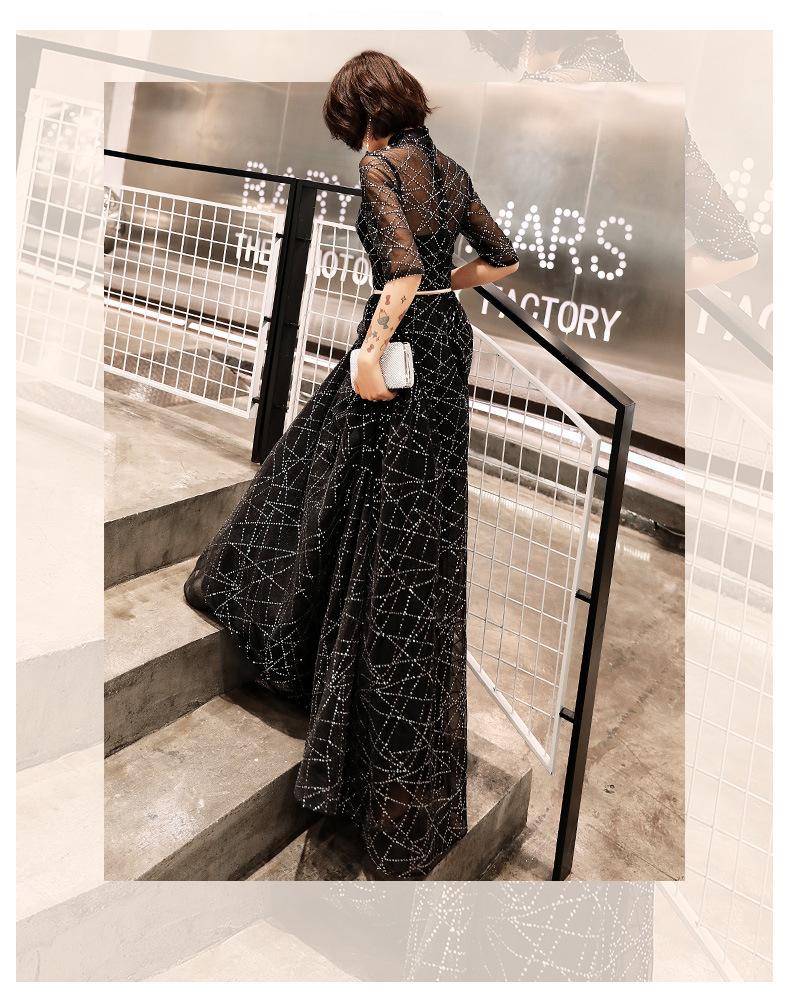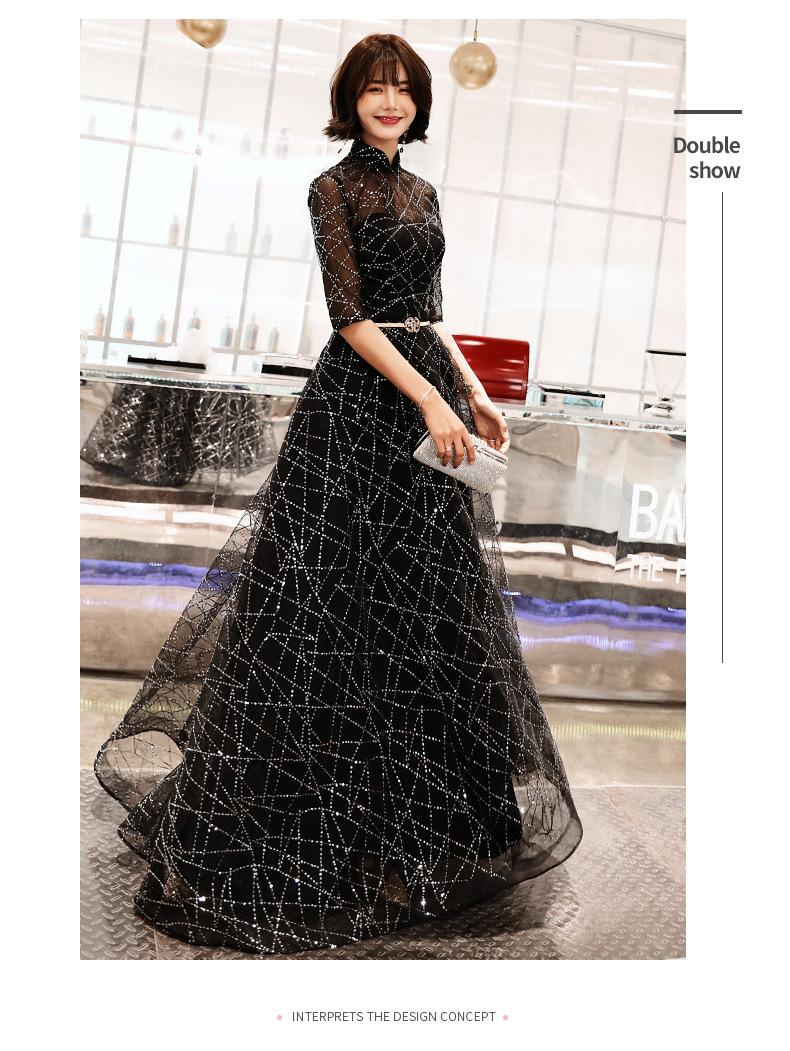 Compre Vestido de Noite de Banquete Céu Estrelado Feminino 2025 Novo Moda Dama Dignificada Aniversário Preto Vestido Longo no atacado no Joom.pro