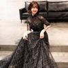 Vestido de Noite de Banquete Céu Estrelado Feminino 2025 Novo Moda Dama Dignificada Aniversário Preto Vestido Longo