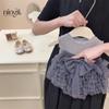 Saia infantil 2025 primavera feminina bebê coreano cor sólida saia de renda infantil estilo ocidental saia de bolo doce solta