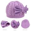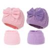 Chapéu de malha infantil com padrão de laço fofo e novo, inverno, quente, forrado de lã, proteção para orelhas espessa, chapéu de lã