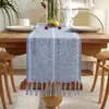 American Country Hand-Woven Tassel Hollow Table Runner Toalha de Mesa Simples Estilo Moderno Capa Algodão Longo e Toalha de Mesa de Linho