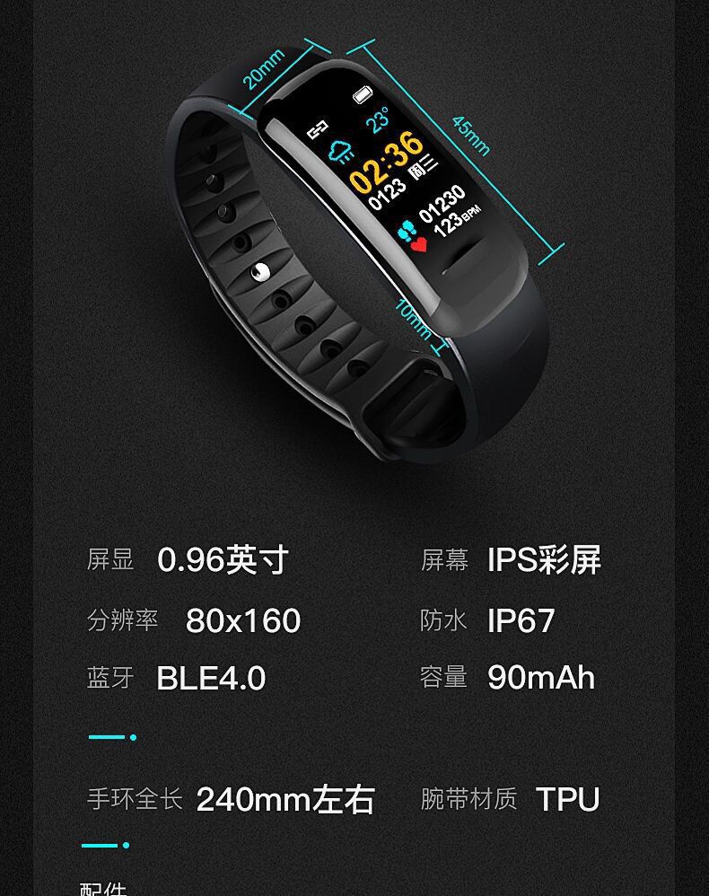 Pulseira Inteligente C1 Plus Tela Colorida Pressão Arterial Frequência Cardíaca Multifuncional Bluetooth Alta Definição Relógio Esportivo Vendas Diretas de Fábrica