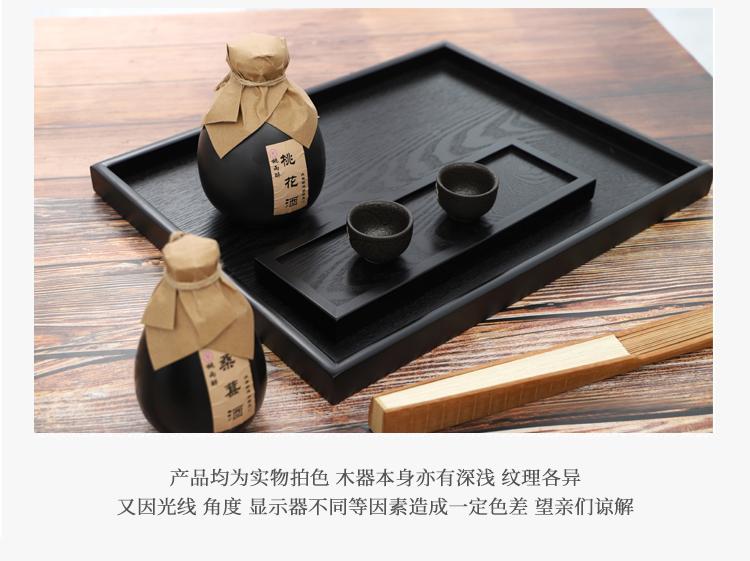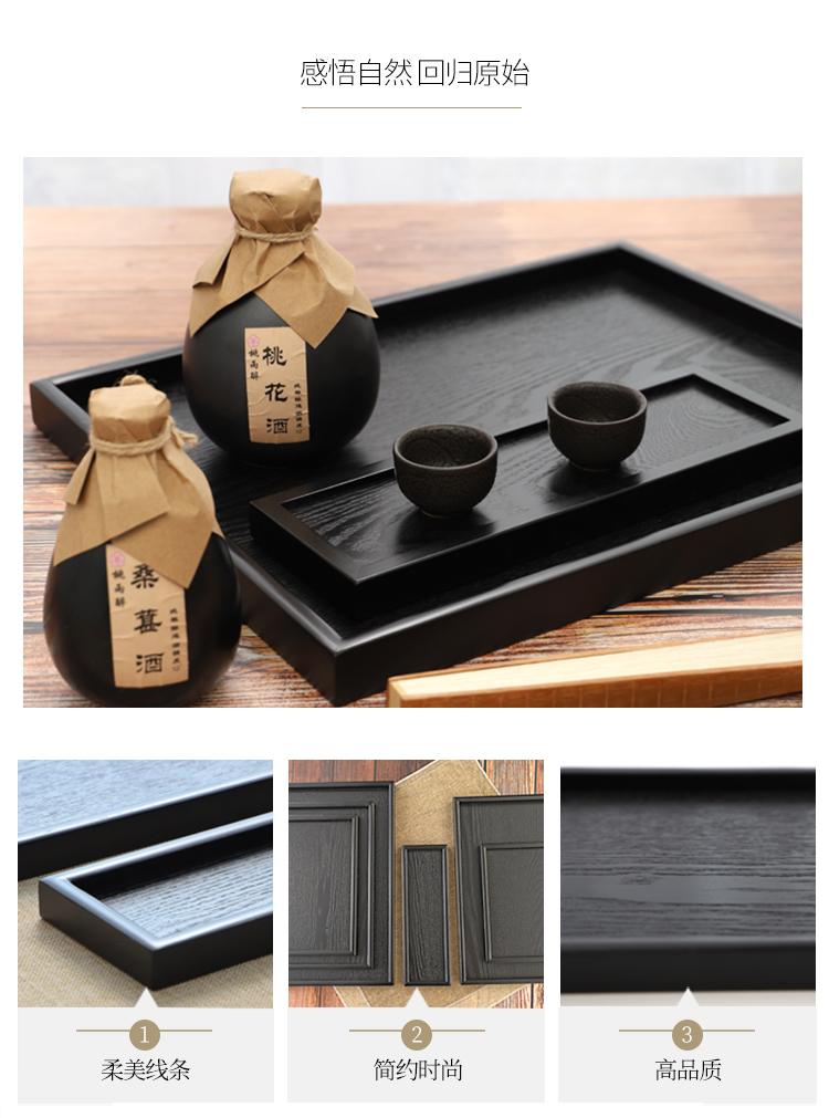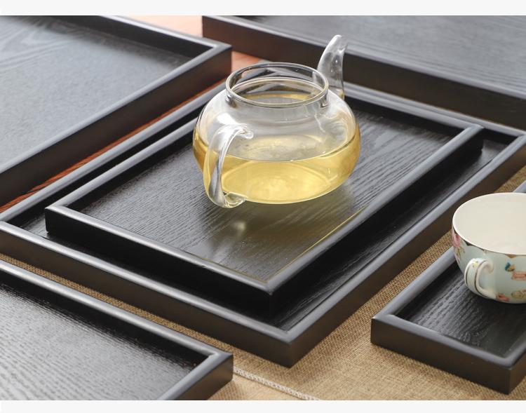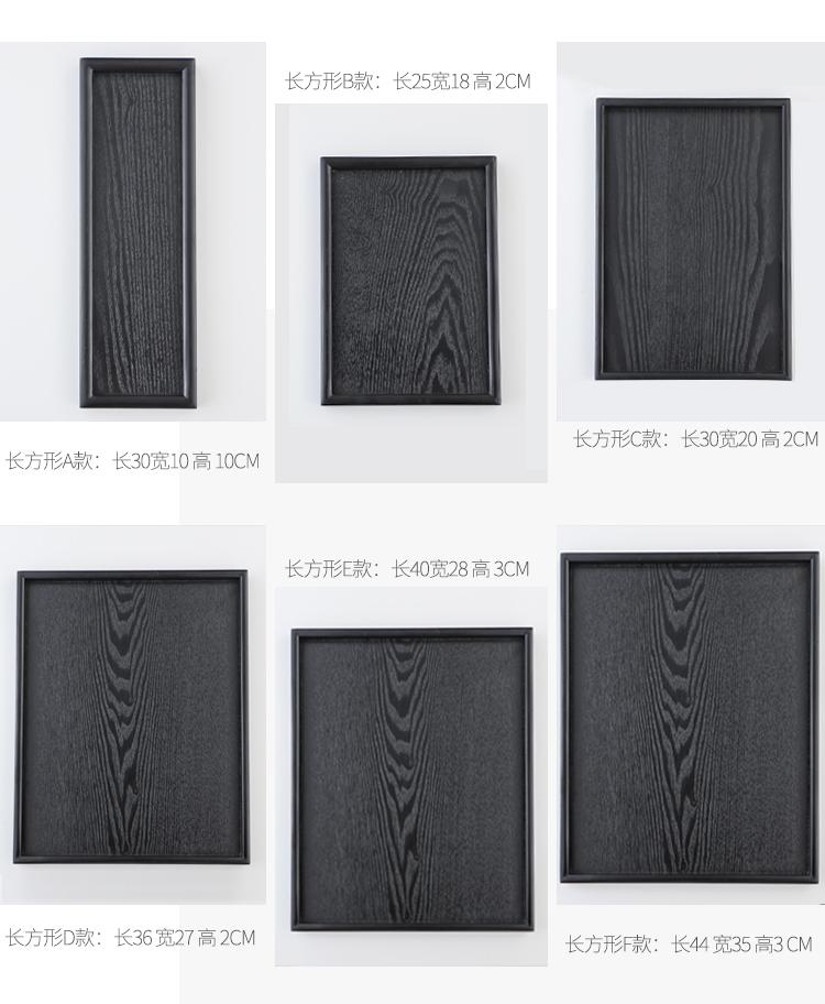 Bandeja de madeira maciça preta Xyt Bandeja retangular de madeira para frutas domésticas Bandeja de chá de hotel Bandeja para copos de água Bandeja plana