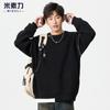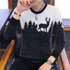 Suéter masculino casaco tendência outono e inverno adolescentes gola redonda forrado de lã camisa de base espessada roupas de cima