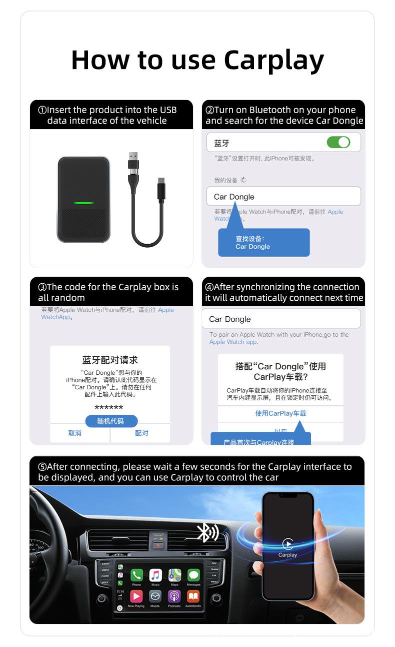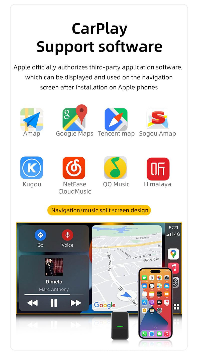 Adequado para Apple Carplay Carro Com Fio para Sem Fio Caixa Inteligente Projeção de Tela do Carro Interconexão Carro-Máquina Conversão