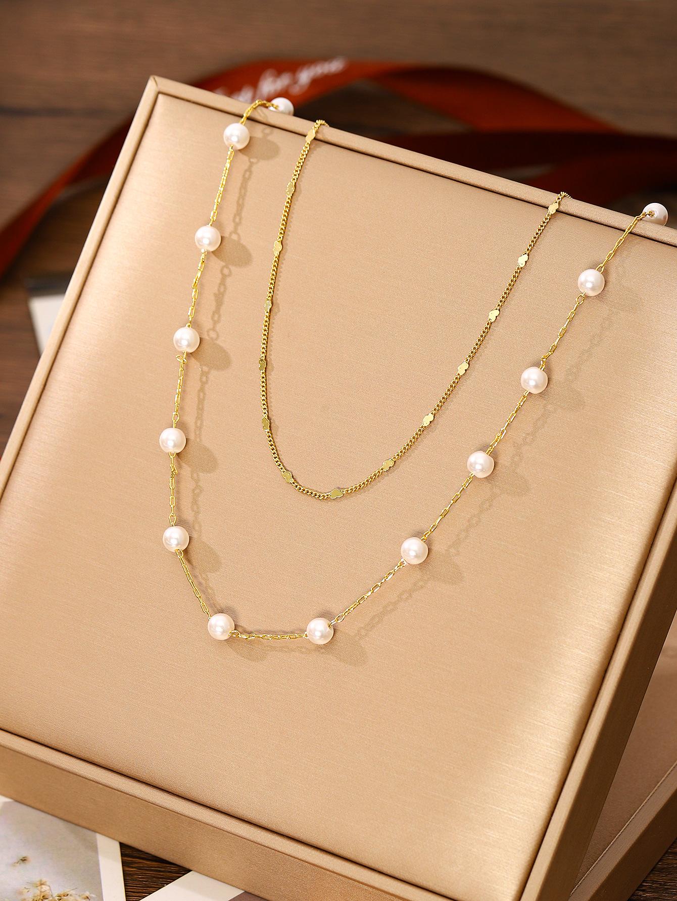 2024 Europeu e americano novo colar de ouro simples elegante moda pérola pingente conjunto de duas peças