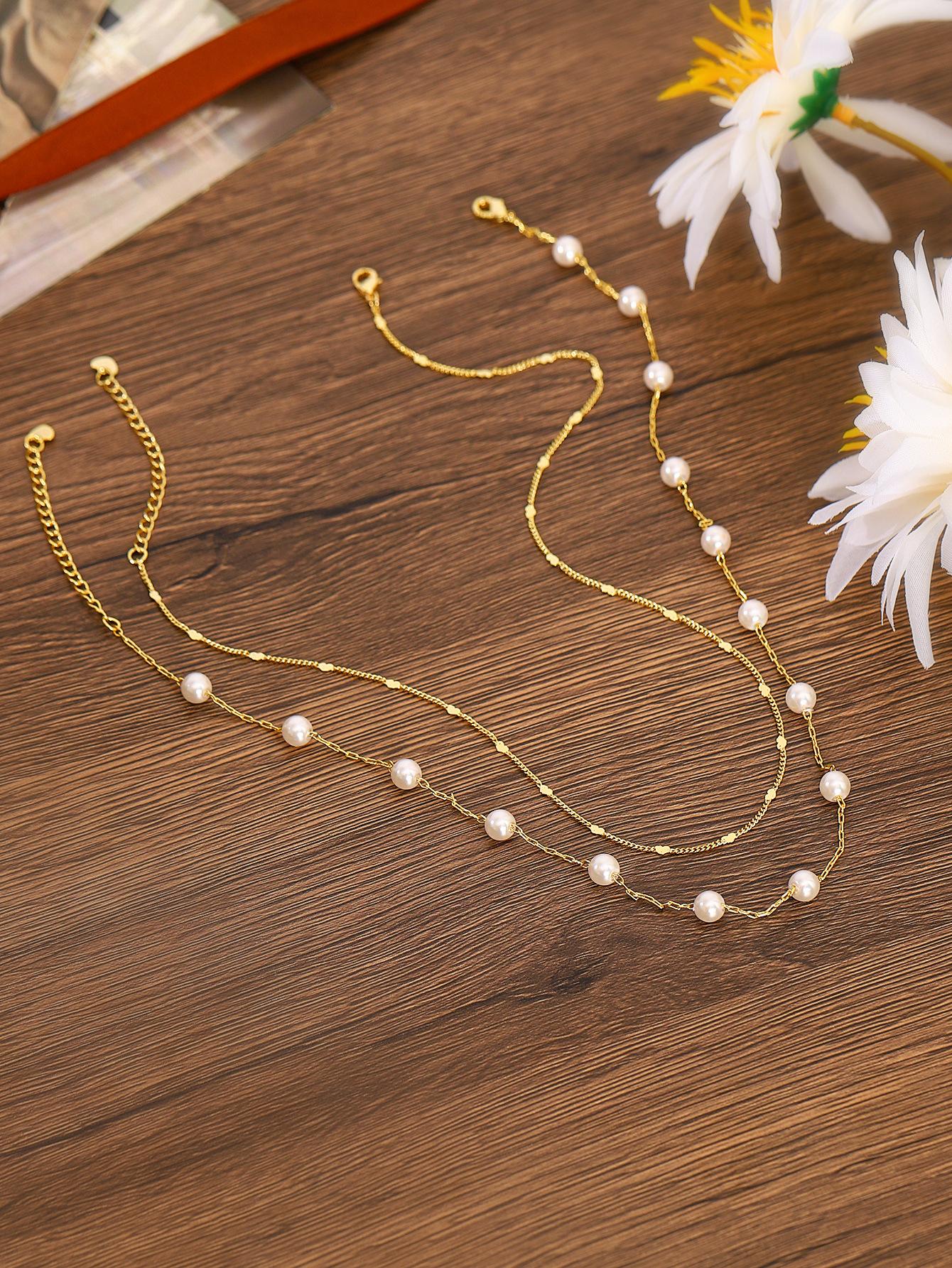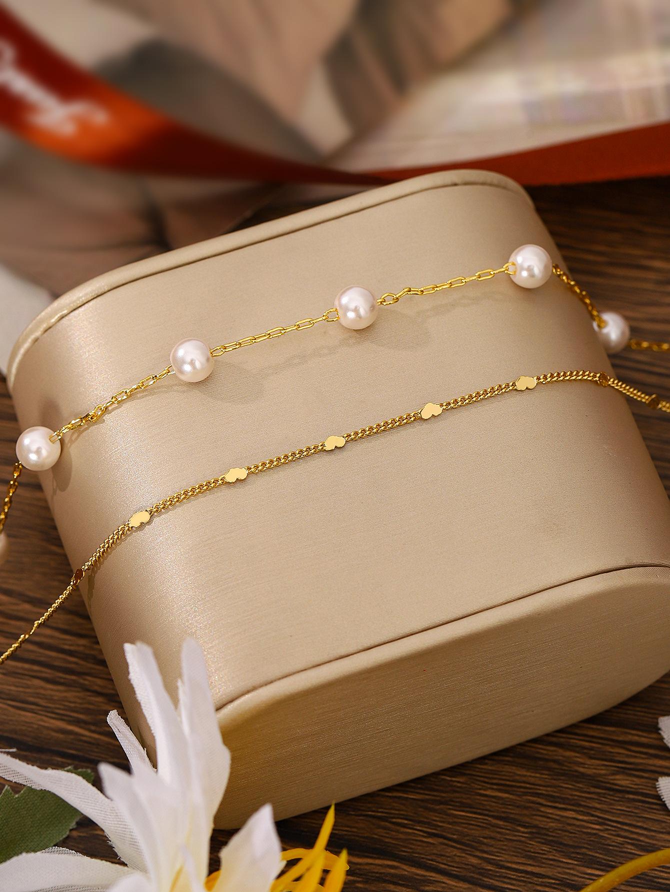 Compre 2024 Europeu e americano novo colar de ouro simples elegante moda pérola pingente conjunto de duas peças no atacado no Joom.pro
