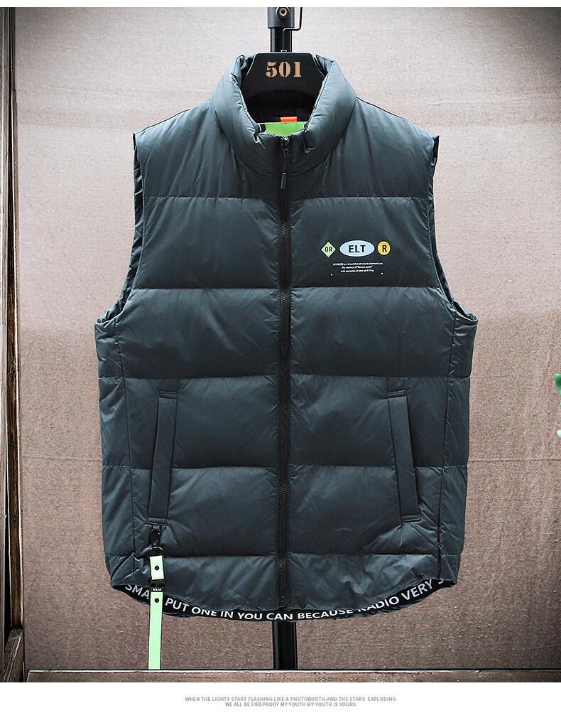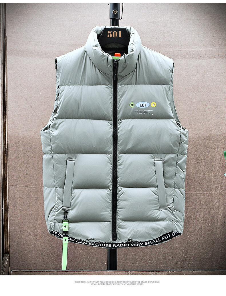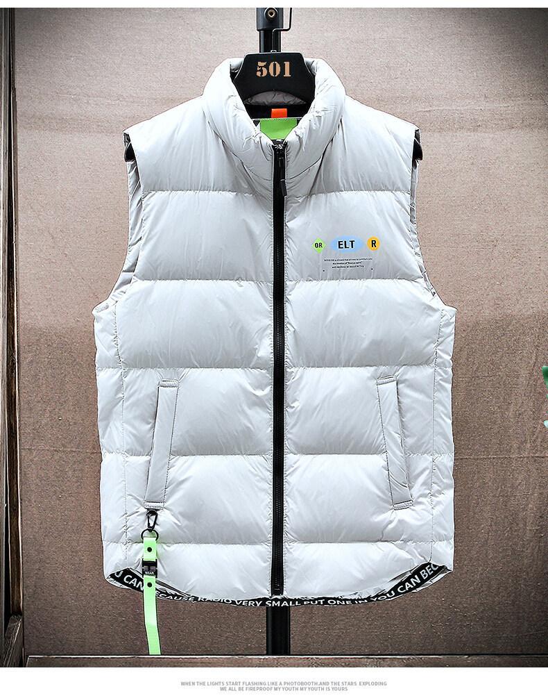 Colete masculino de inverno quente, estilo coreano, moderno, slim fit, bonito, combinando, branco, pato, colete fashion