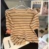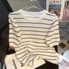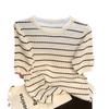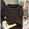 Início do Outono Gola Redonda Malha Feminino Casaco Solto Primavera e Outono Estilo Coreano Novo Design Sense Top Listrado Base Suéter de Malha